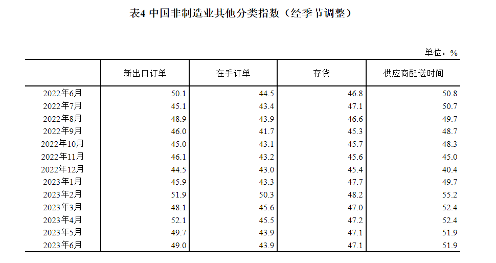 供应商配送时间指数为50.4%,比上月下降0.1个百分点,仍高于临界点,表明制造业原材料供应商交货时间继续加快。