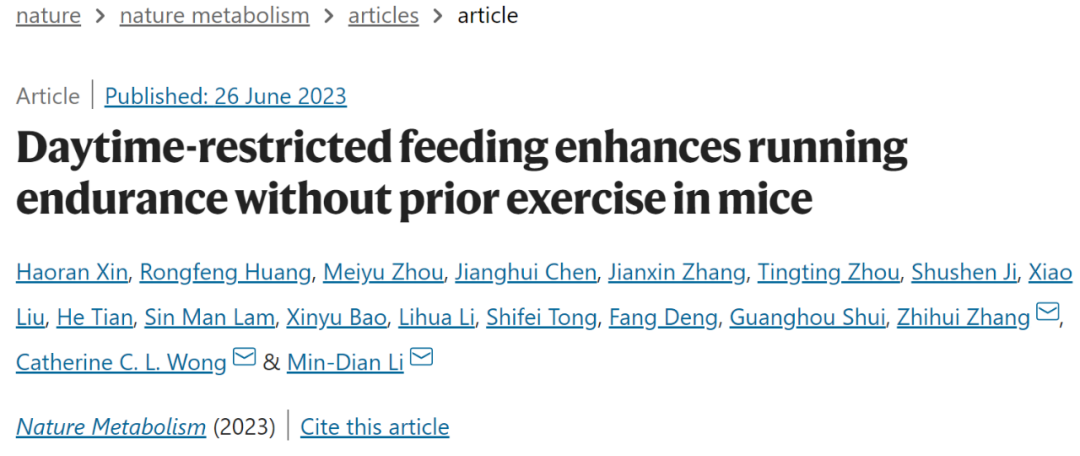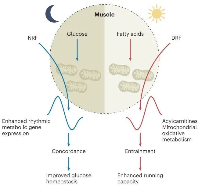 这项研究采用白天限制性断食(DRF)的方法,即只允许小鼠们在清醒时段进食,从而通过调节代谢生物钟,改善线粒体功能和脂质代谢状态,使小鼠的跑步耐力(running endurance)比夜晚进食或自由进食的同类增强了近100%,“跑出了职业水平”,研究还发现了起到关键调控作用的基因[1]。