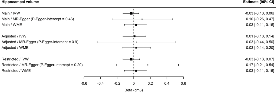 接着,研究者利用先前确认好的92个与午睡相关的独立遗传变异(单核苷酸多态性,SNPs),对比有午睡相关基因编码的“午睡者”和没有基因编码的“非午睡者”在大脑总体积、海马体积、反应时间以及视觉记忆之间的区别,以评估午睡与认知功能、大脑体积之间的因果关系。