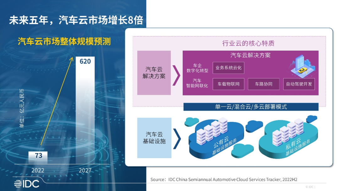 整体来看,IDC预计汽车云市场增长将呈现两大突出特点: