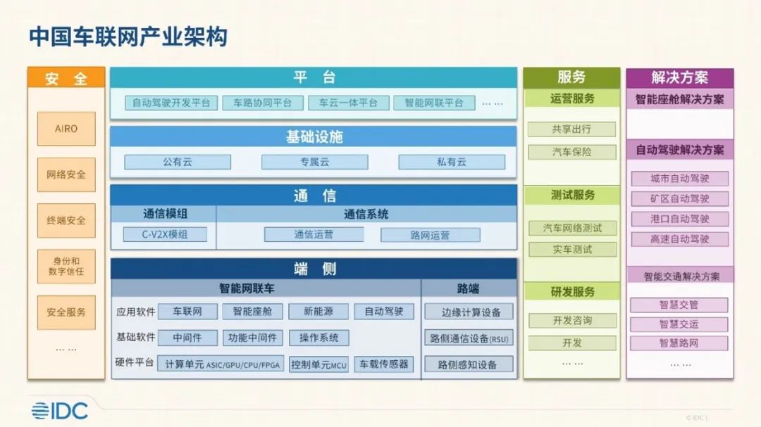 当前,车端IT属性不断增强,逐步具备更多娱乐、自动驾驶等丰富功能。车企推出诸多功能,离不开汽车产业上游技术与产品体系的整体升级。以供应商为主导、以“车端、路端、通信、云基础设施与平台、安全、服务、解决方案”等技术产品有机组成的车联网市场已经形成,并在利好政策、市场需求升级、通信AI等技术成熟的多重因素推动下,不断向“电动化、智能化、网联化、共享化”方向演进。