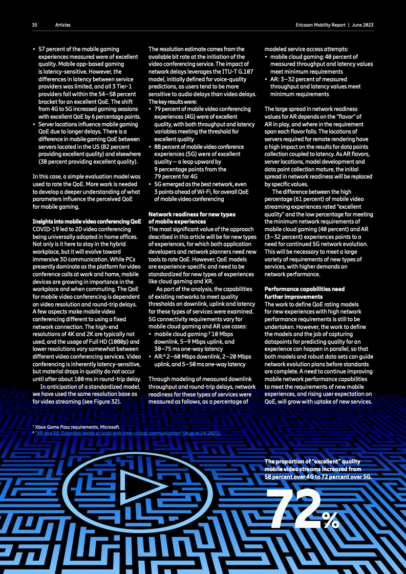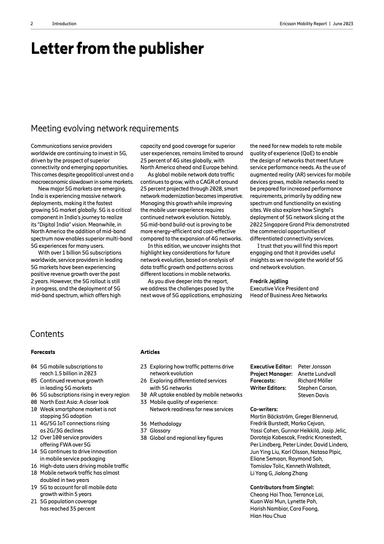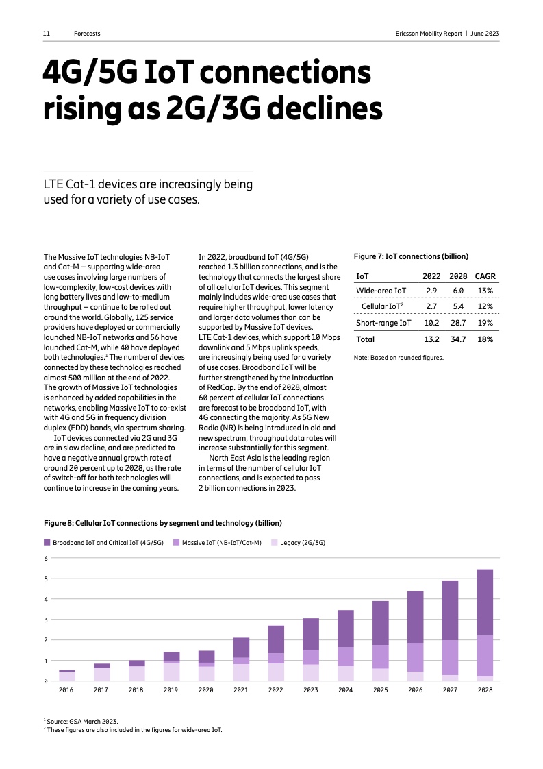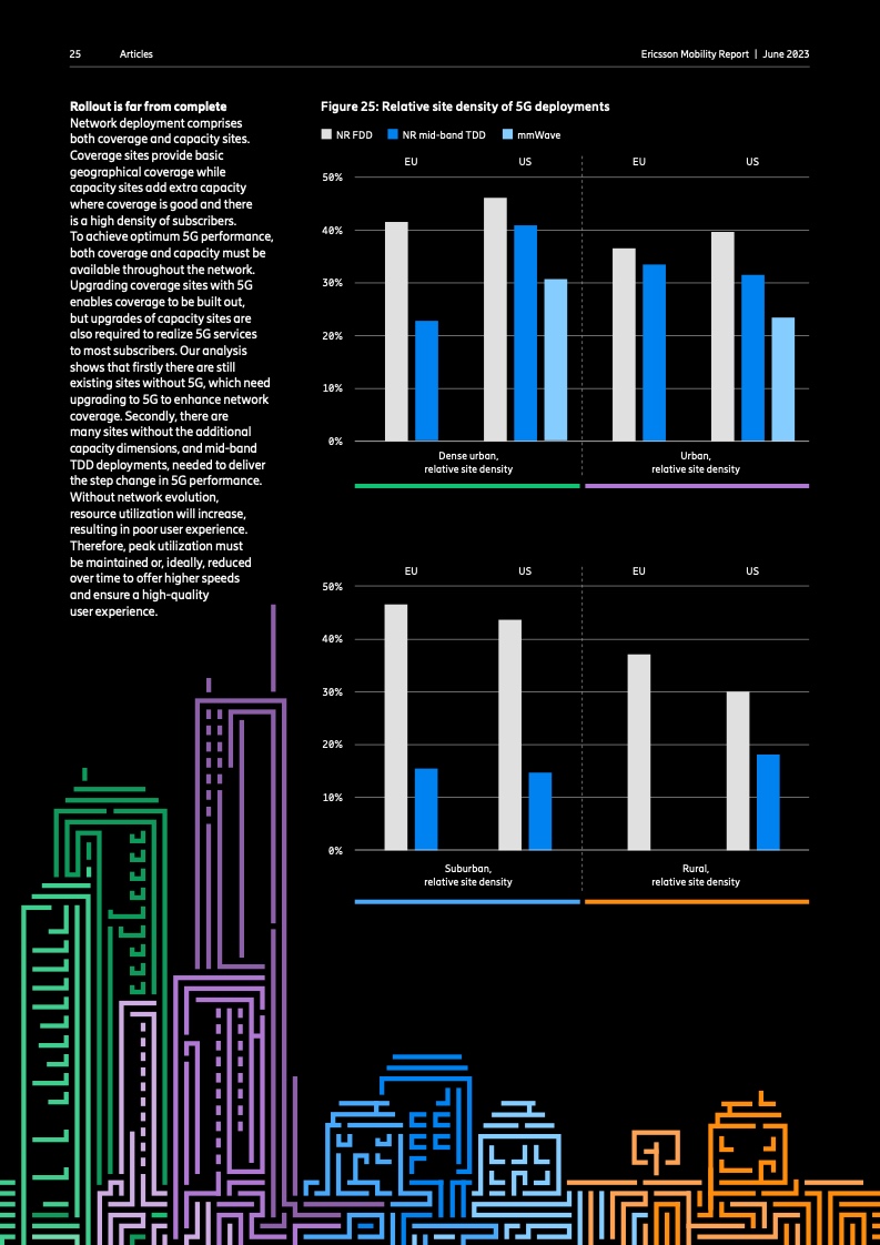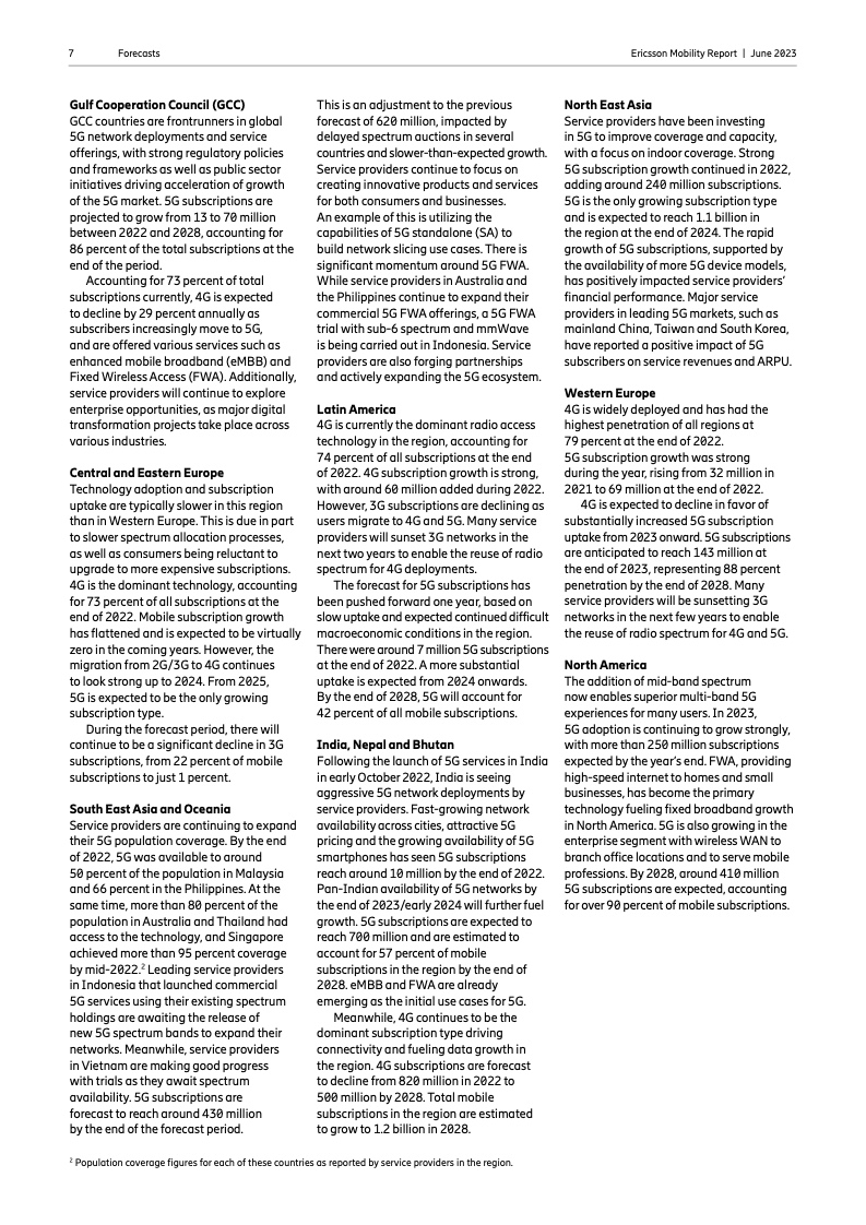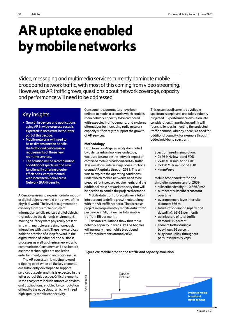 尽管一些市场存在地缘政治挑战和宏观经济放缓,但从根本上说,全球每个地区的5G用户都在增长。全球移动网络数据流量继续增长,预计到2023年底,全球每部智能手机的月平均使用量将超过20GB。