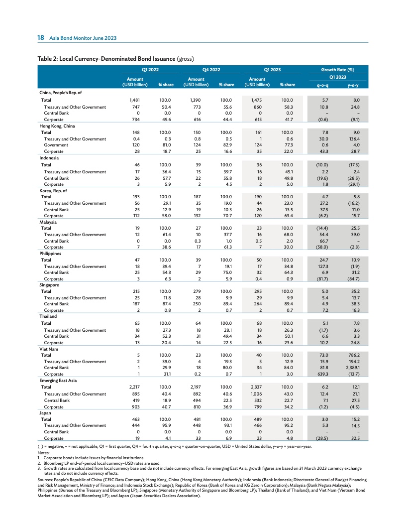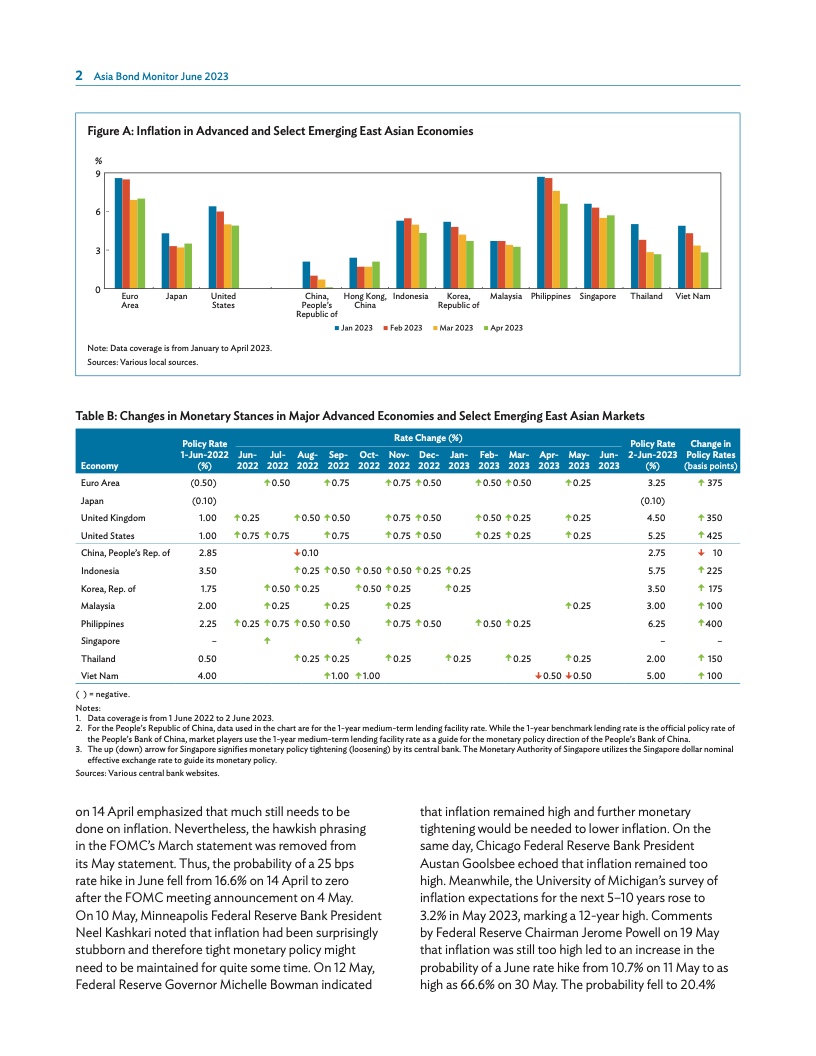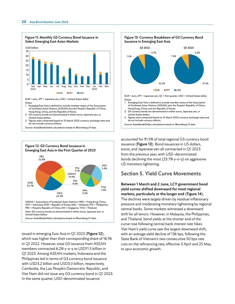 根据亚洲开发银行(亚行)发布的最新一期《亚洲债券监测》报告,在东亚地区通胀压力有所减轻和美国放慢货币紧缩步伐的背景下,该地区新兴经济体的债券收益率在3—5月有所下降。