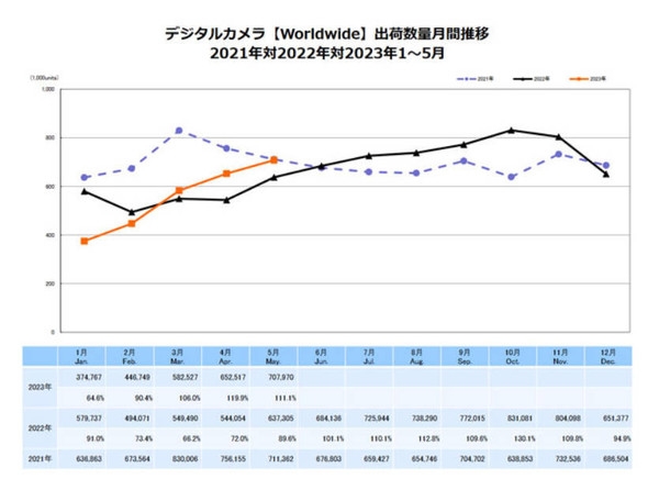 此前,在2023年3月和4月,数码相机的出货量增长更为强劲,但目前这种势头似乎有放缓的迹象。