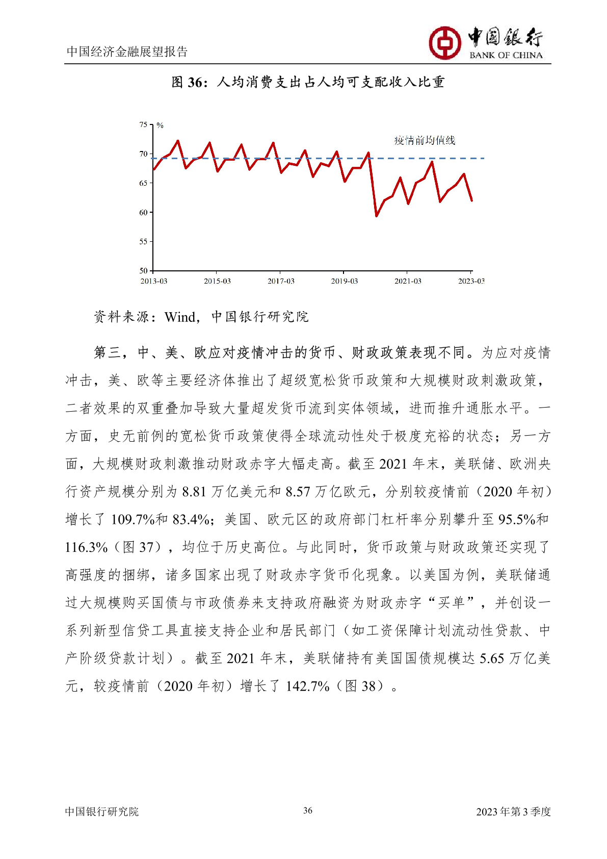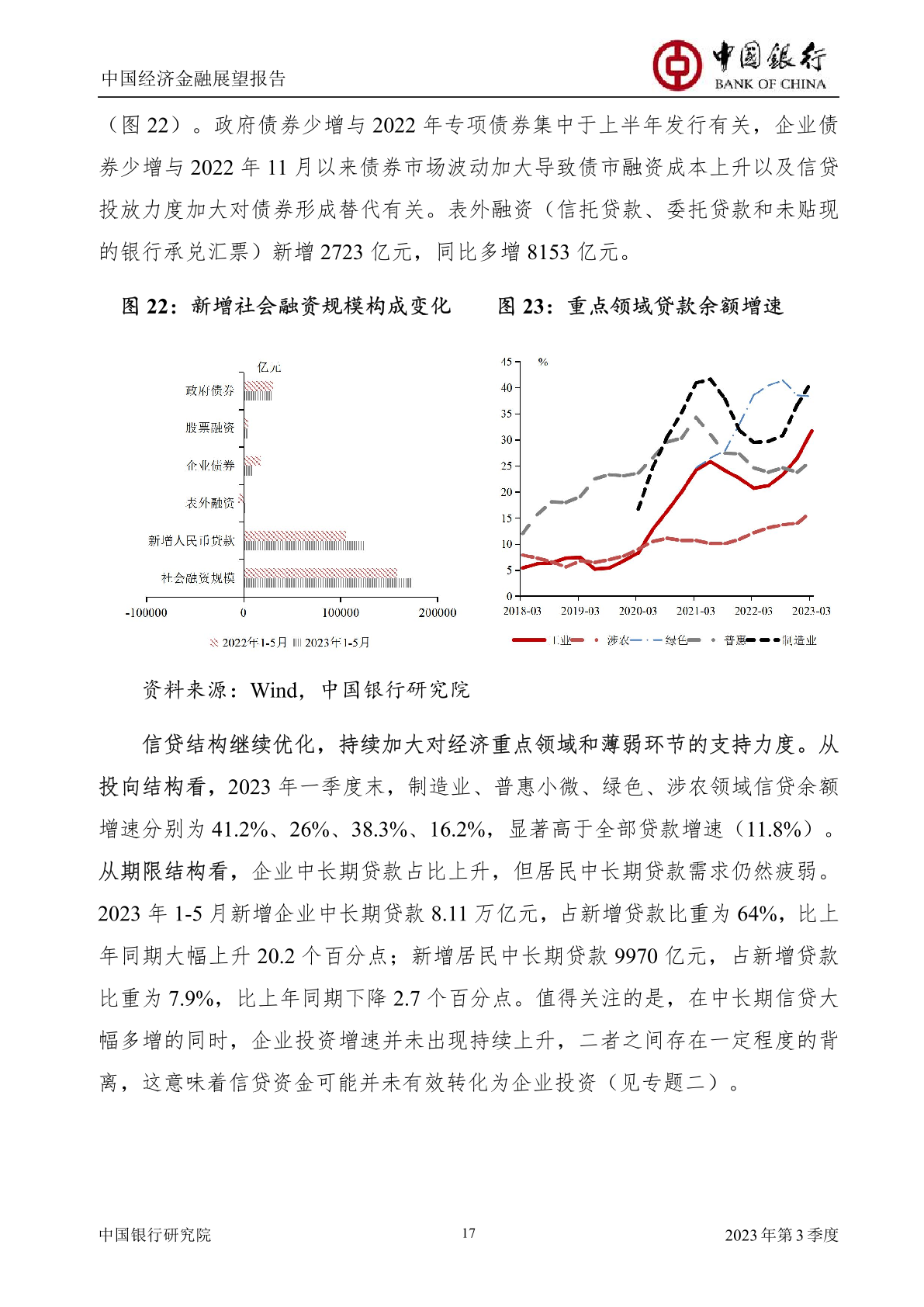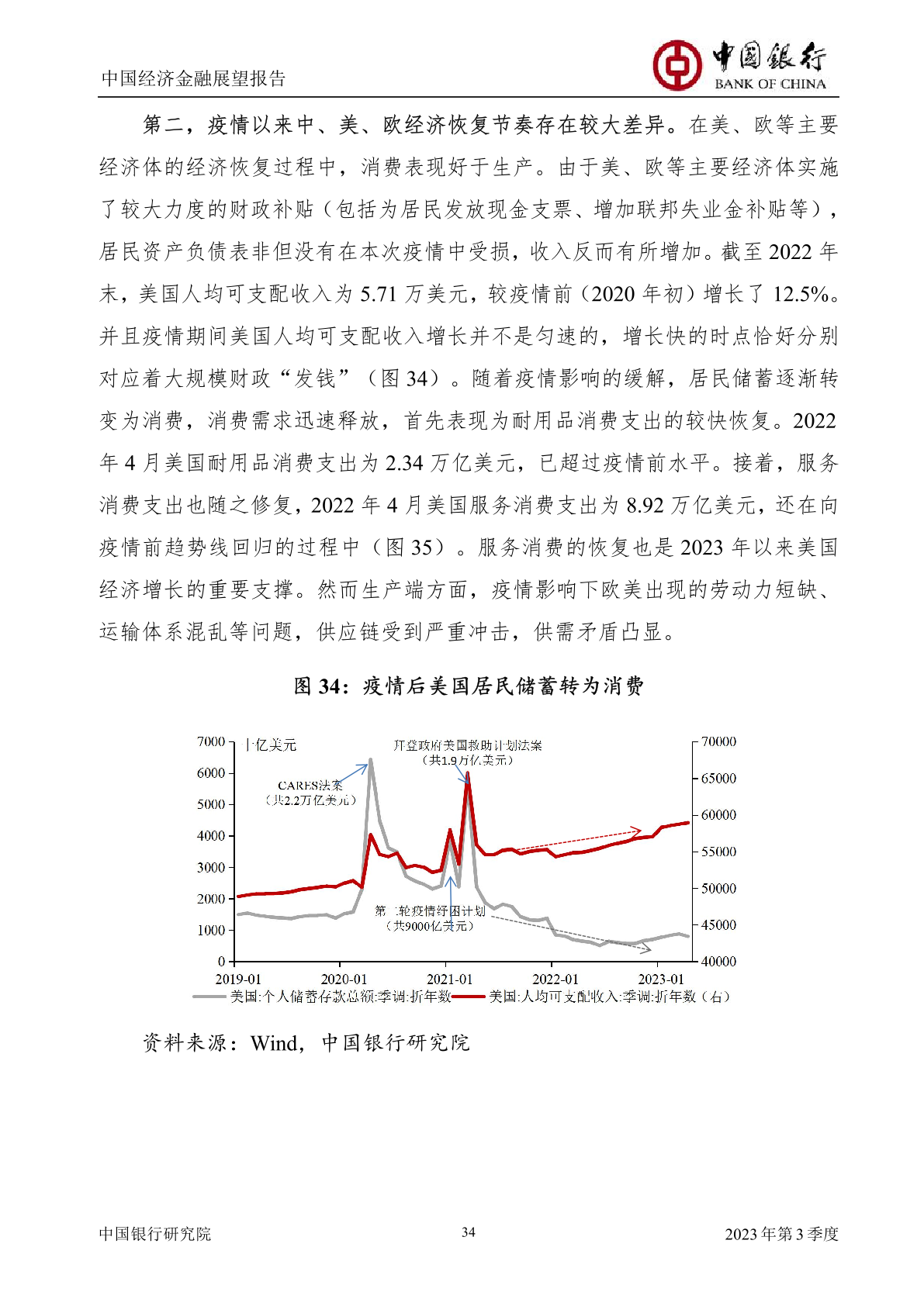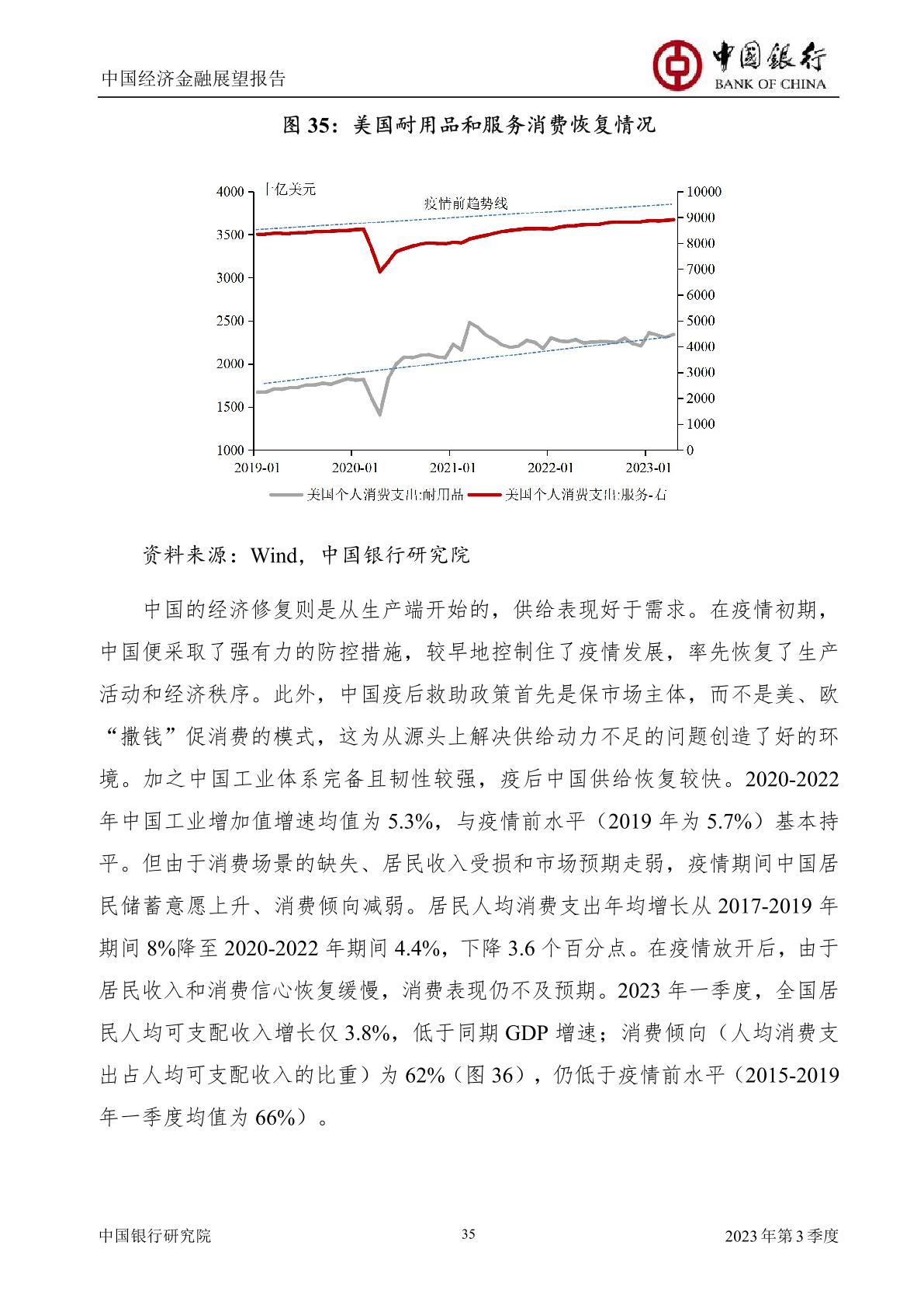 2023 年上半年,中国国内疫情影响明显消退,需求收缩、 供给冲击、预期转弱三重压力缓解,国内需求对经济增 长的贡献提高,一季度中国 GDP 增长 4.5%,好于市场 预期。进入二季度,经济恢复势头有所放缓,内生动力 不强、需求不足的问题突出,预计二季度 GDP 增长 6% 左右,其增速高于一季度,主要是由于上年同期基数较 低。