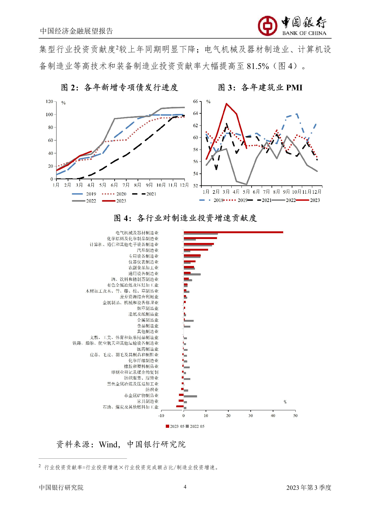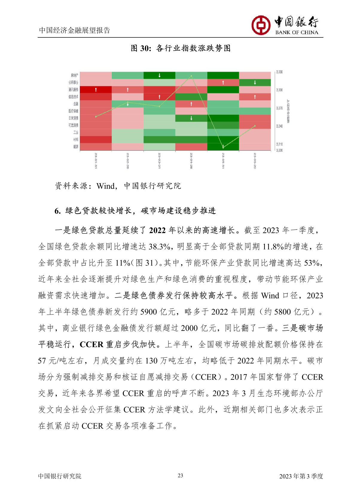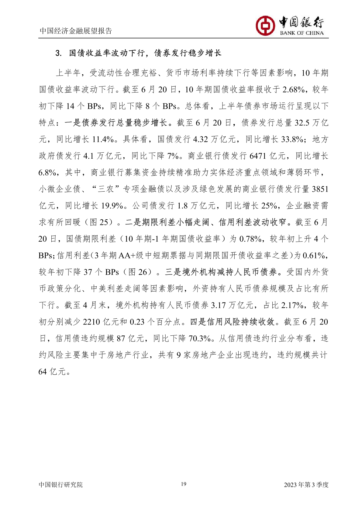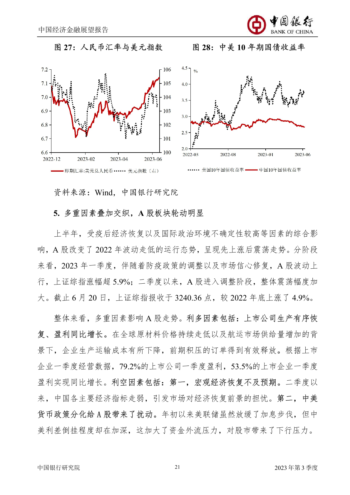 展望下半年,中国经济增长仍将主要取决于内需的恢复 程度。在促消费政策、服务消费加快释放的带动下,消 费有望保持温和修复,基建投资将继续较快增长,高技 术产业投资对制造业投资增长带来支撑,房地产市场逐 步探底修复。总体预计三季度 GDP 增长 4.9%左右,全 年增长 5.4%左右。