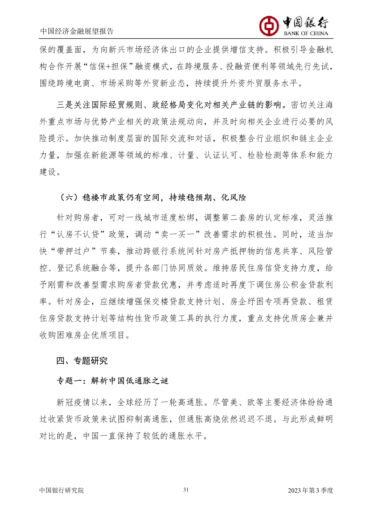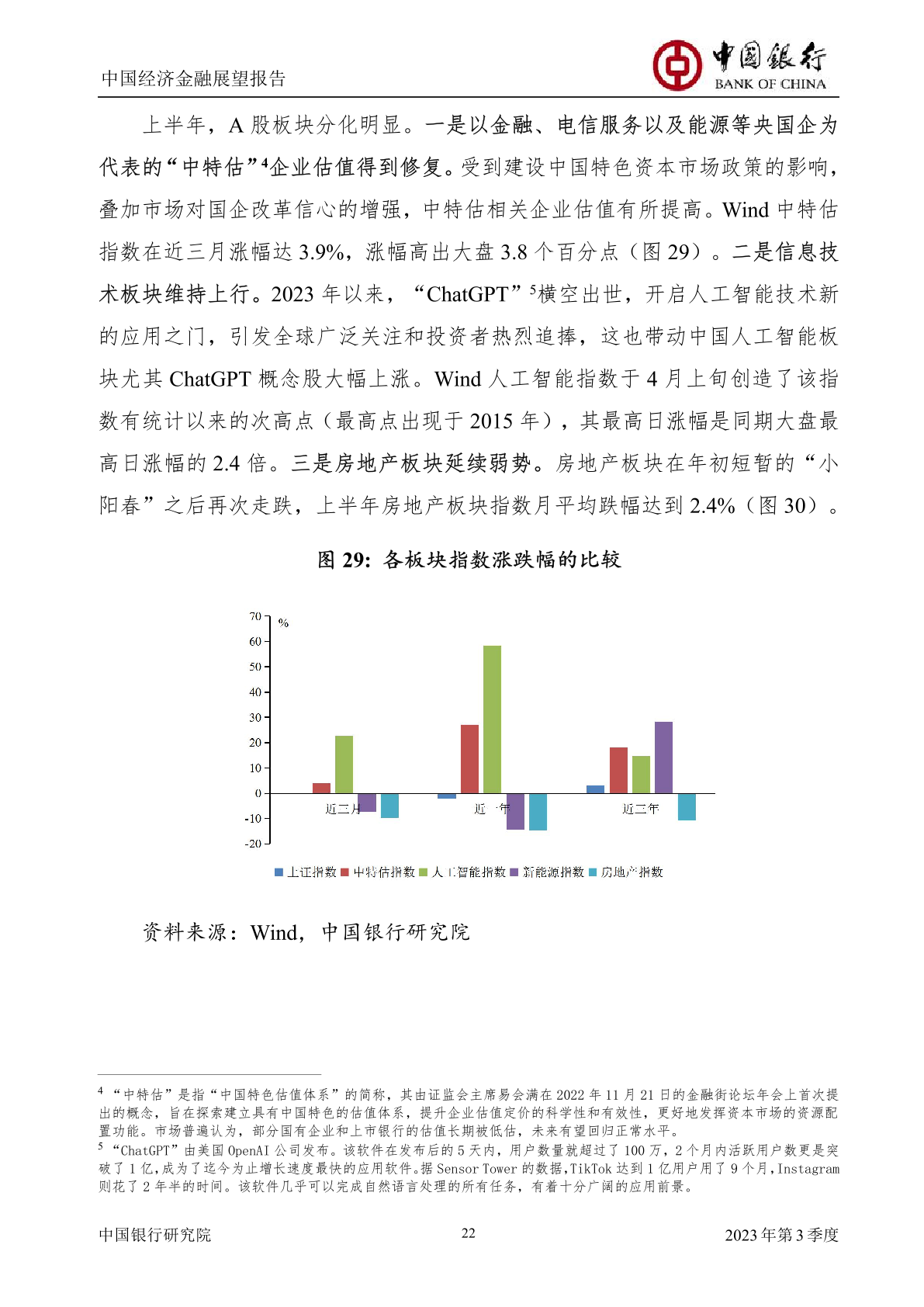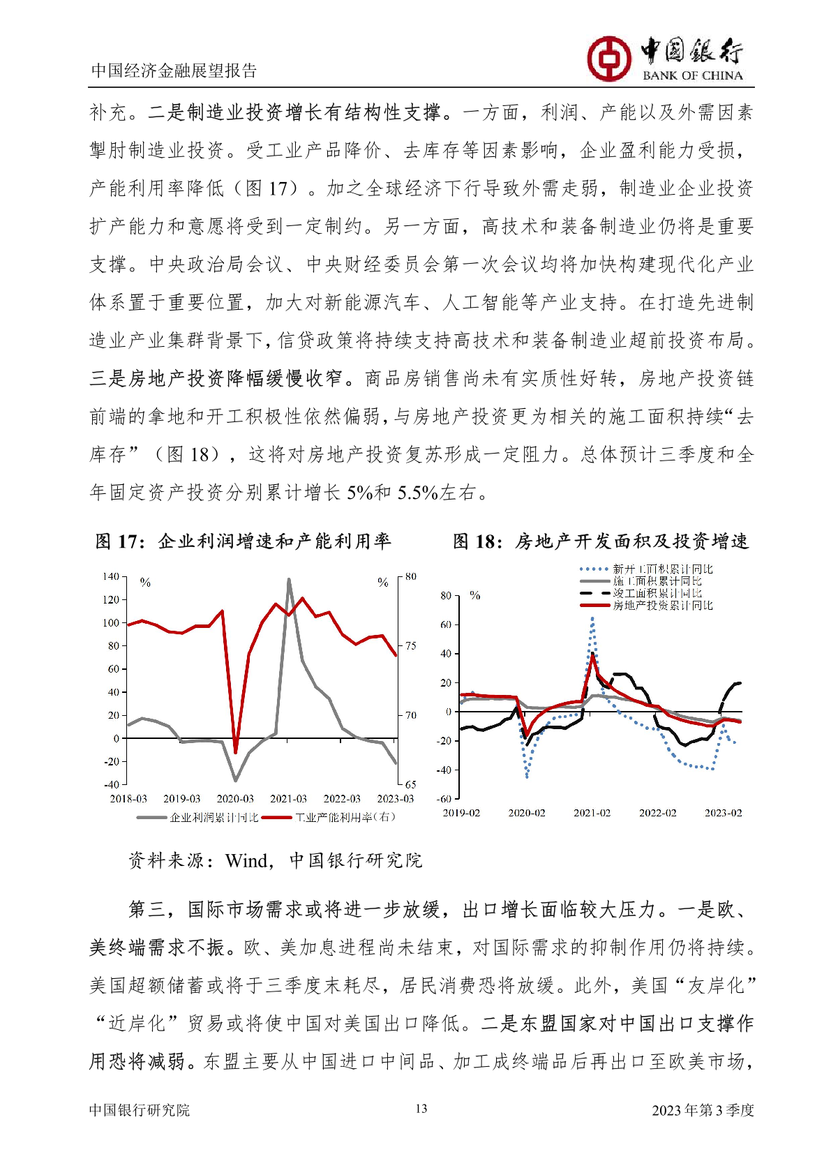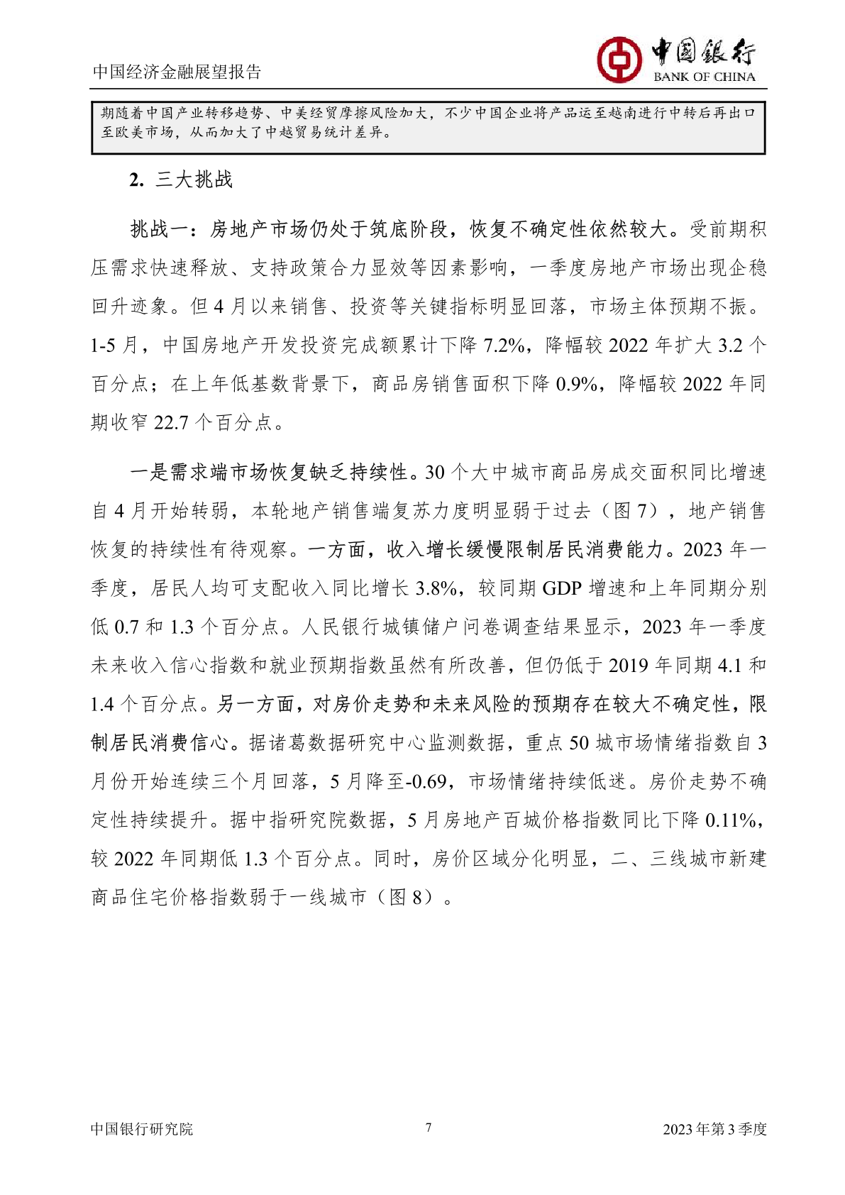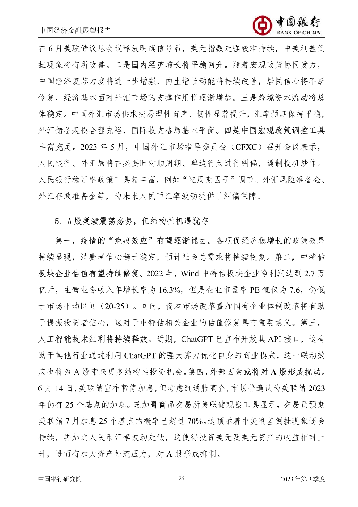 展望下半年,中国经济增长仍将主要取决于内需的恢复 程度。在促消费政策、服务消费加快释放的带动下,消 费有望保持温和修复,基建投资将继续较快增长,高技 术产业投资对制造业投资增长带来支撑,房地产市场逐 步探底修复。总体预计三季度 GDP 增长 4.9%左右,全 年增长 5.4%左右。