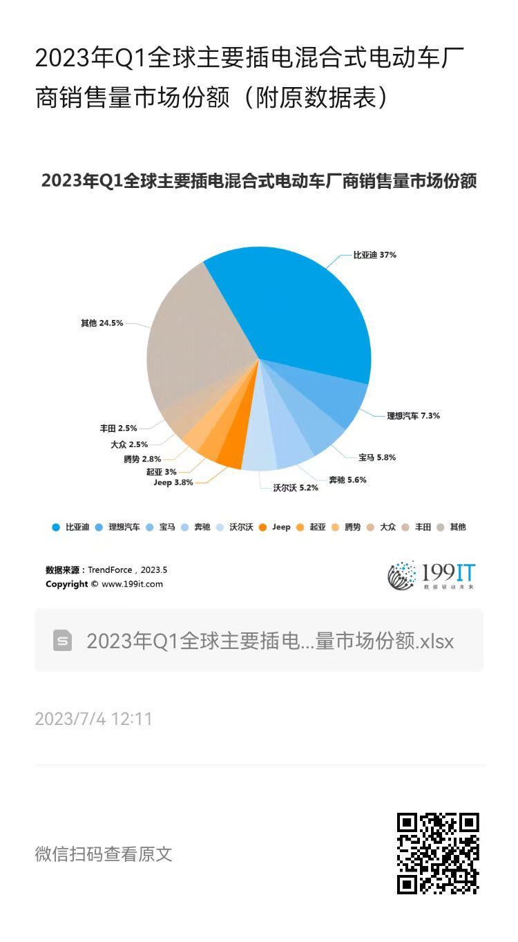 2023年Q1全球主要插电混合式电动车厂商销售量市场份额(附原数据表) ​​​