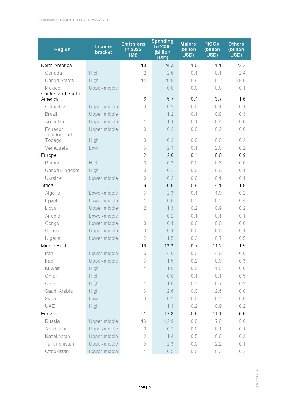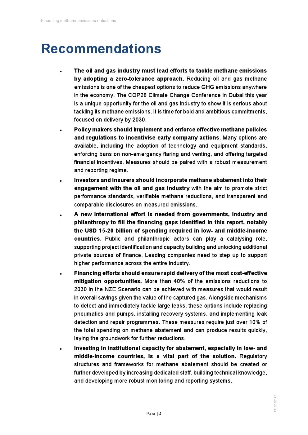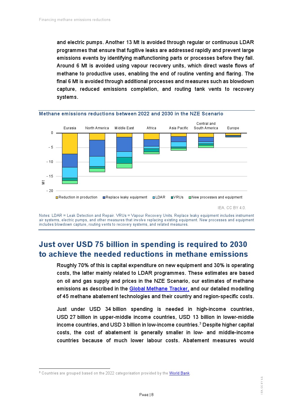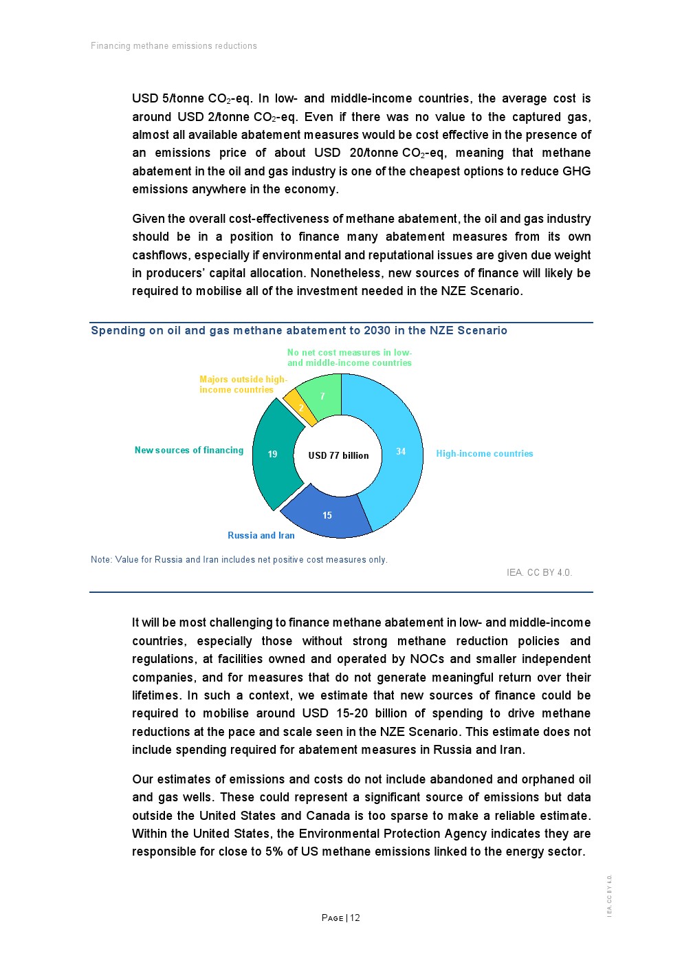 石油和天然气公司对减排负有主要责任。在NZE情景中,减少甲烷排放所需的支出不到2022年该行业净收入的2%。在内部投资选择有限的地方,私人资金来源可以提供支持。甲烷减排的法规和政策对减少甲烷排放至关重要。