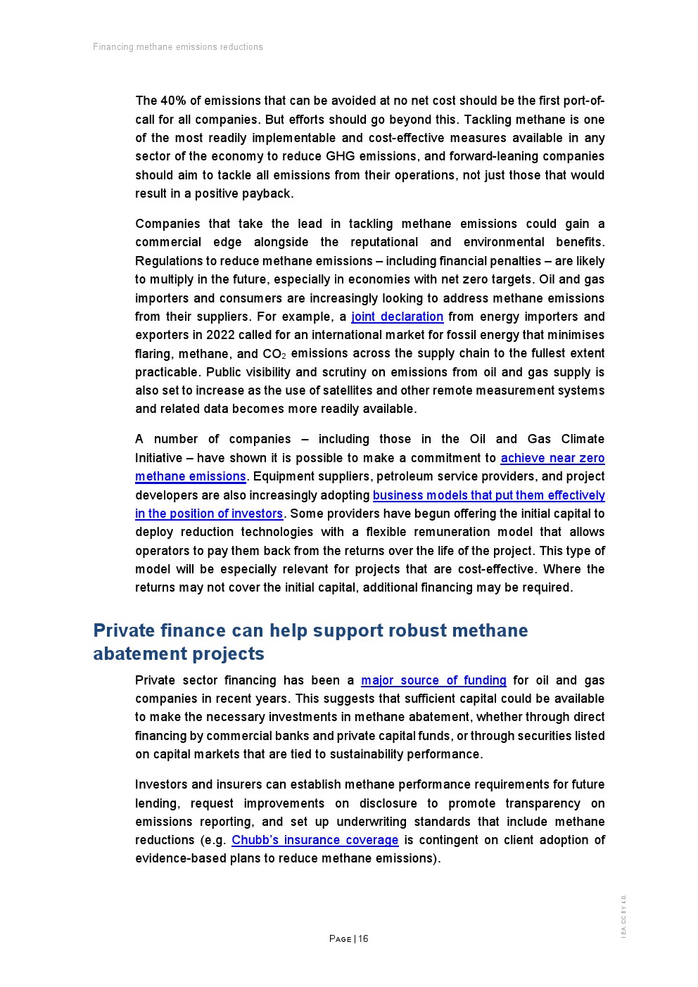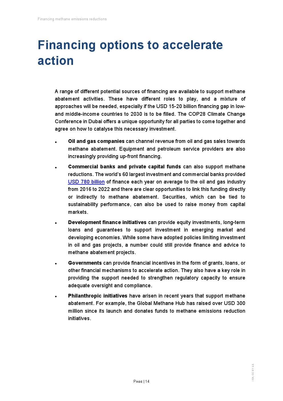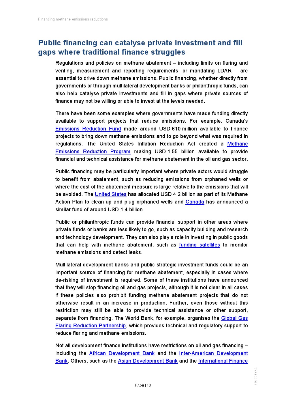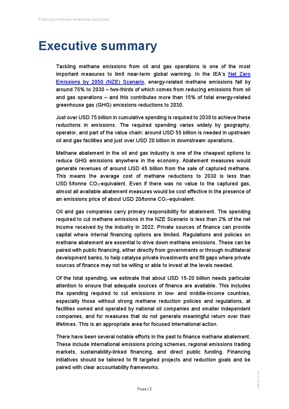 石油和天然气公司对减排负有主要责任。在NZE情景中,减少甲烷排放所需的支出不到2022年该行业净收入的2%。在内部投资选择有限的地方,私人资金来源可以提供支持。甲烷减排的法规和政策对减少甲烷排放至关重要。