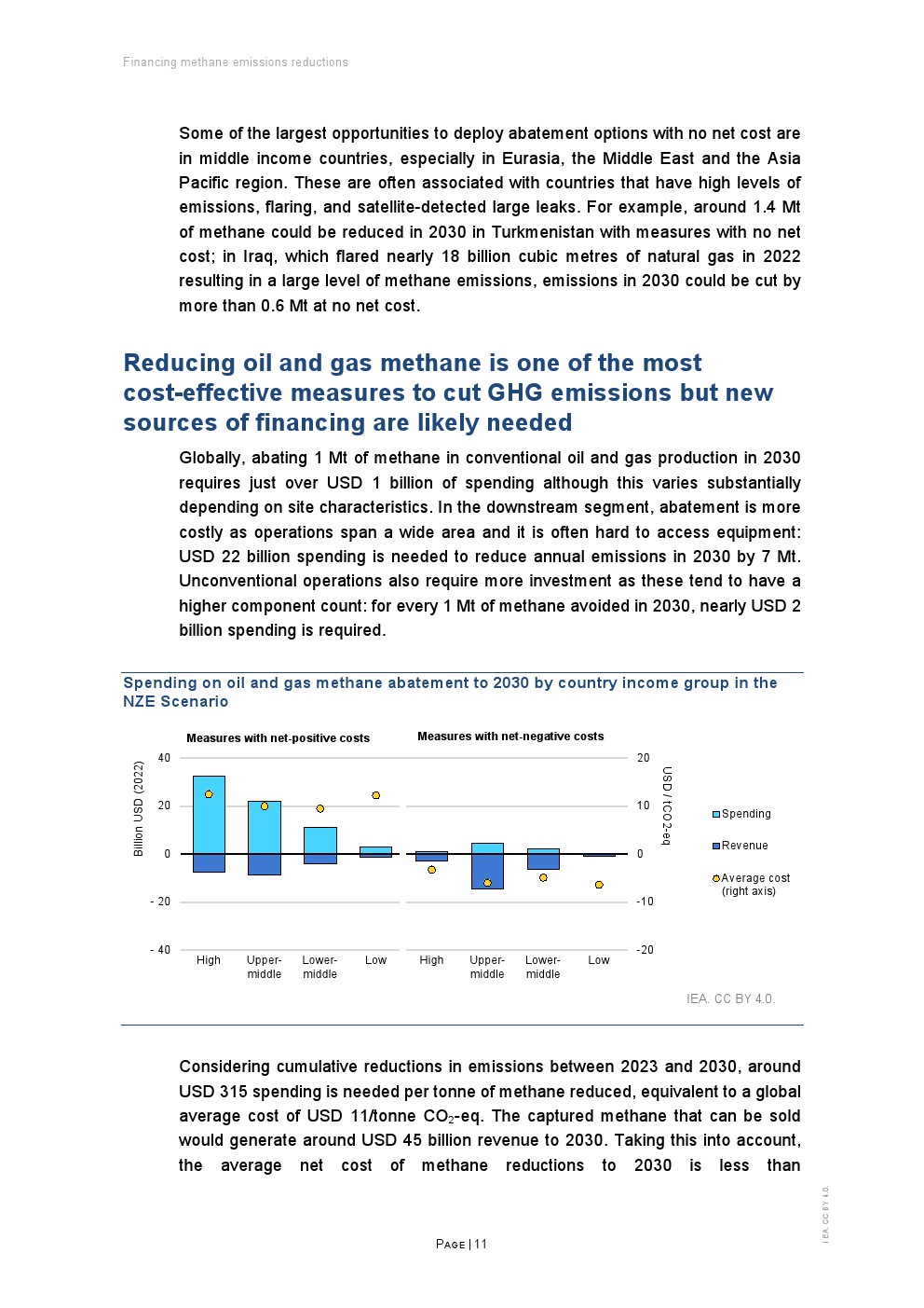 石油和天然气行业的甲烷减排是任何地方减少温室气体排放的最便宜的选择之一。减排措施将通过出售捕获的甲烷产生约450亿美元的收入。这意味着到2030年减少甲烷排放的平均成本低于每吨二氧化碳当量5美元。