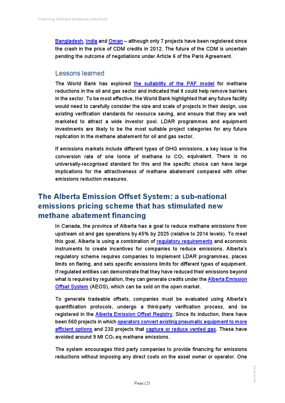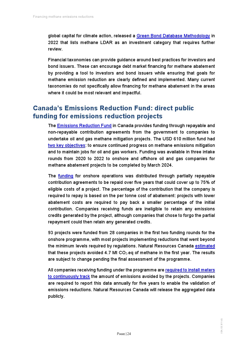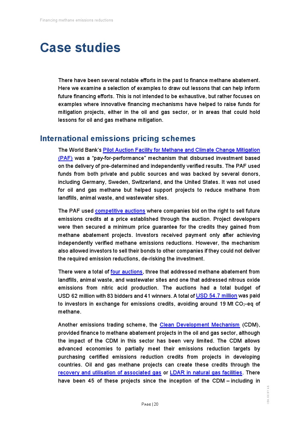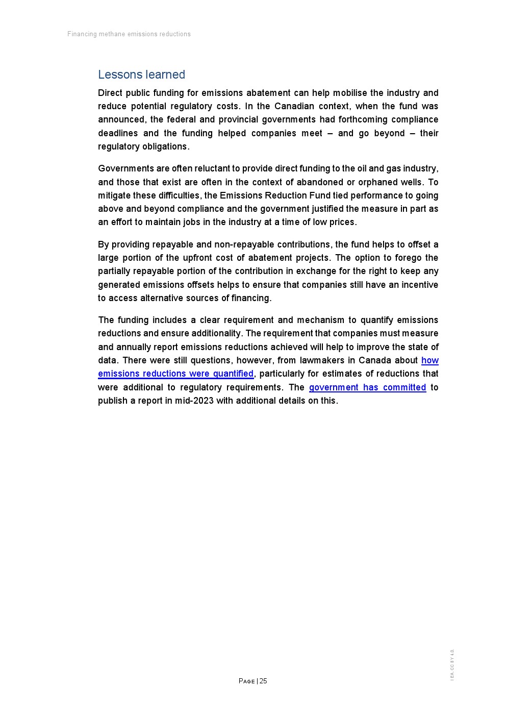 过去曾有几项引人注目的努力为甲烷减排提供资金。这些措施包括国际排放定价机制、区域排放交易市场、与可持续性相关的融资和直接公共资金。融资举措应适应有针对性的项目和减排目标,并与明确的问责框架相配合。