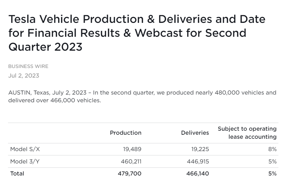 而根据特斯拉发布的信息我们了解到,特斯拉在第二季度一共交付1.9225万辆Model S和 Model X车型,以及44.6915万辆Model 3和Model Y车型。