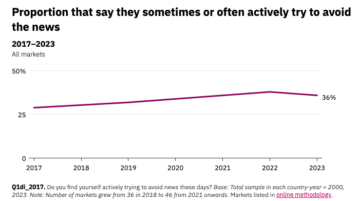 在许多国家,对新闻的兴趣和信任都在下降,新闻报道和公众之间的联系继续疏远。