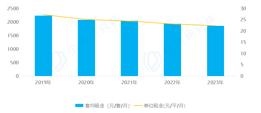 据贝壳平台数据显示,近5年郑州住宅租金稳中有降。截止至2023年4月,2023年郑州住宅套均租金为1865元/套/月,租金同比下降4.1%,降幅较2022年收窄0.9个百分点。单平米租金为22.8元/平/月,同比下降3.5%。