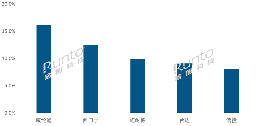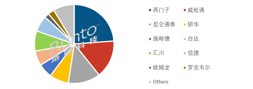 此外,还有更多的品牌各自占据了不到7%的市场份额,合计市占为37%,包括三菱、ABB、霍尼韦尔、罗克韦尔等品牌。