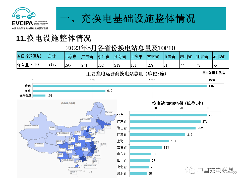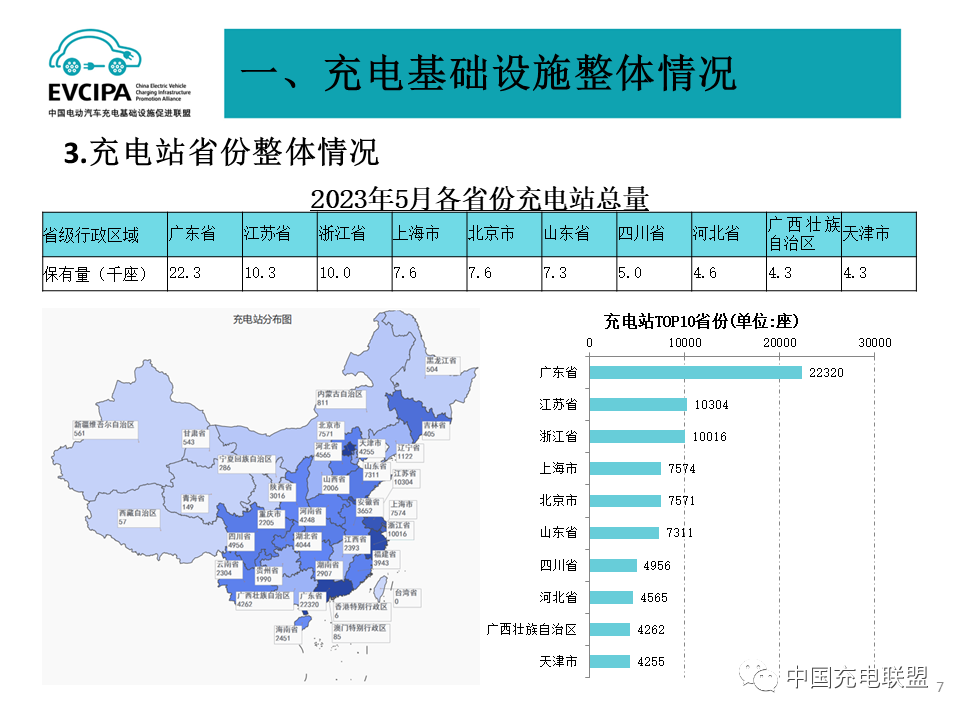 4、充电基础设施整体运行情况,2023年1-5月,充电基础设施增量为114.7万台,其中公共充电桩增量同比上涨5.1%,随车配建私人充电桩增量持续上升,同比上升24.5%。截止2023年5月,全国充电基础设施累计数量为635.6万台,同比增加77.5%。
