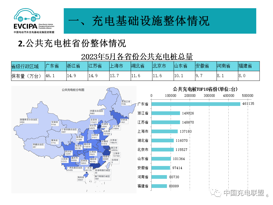 5、充电基础设施与电动汽车对比情况,2023年1-5月,充电基础设施增量为114.7万台,新能源汽车销量294.0万辆,充电基础设施与新能源汽车继续快速增长。桩车增量比为1:2.6,充电基础设施建设能够基本满足新能源汽车的快速发展。
