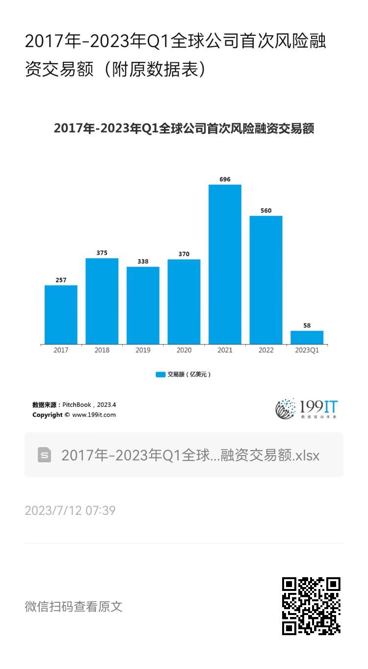 - 2018年-2024年Q1全球公司首次风险融资交易额(附原数据表)