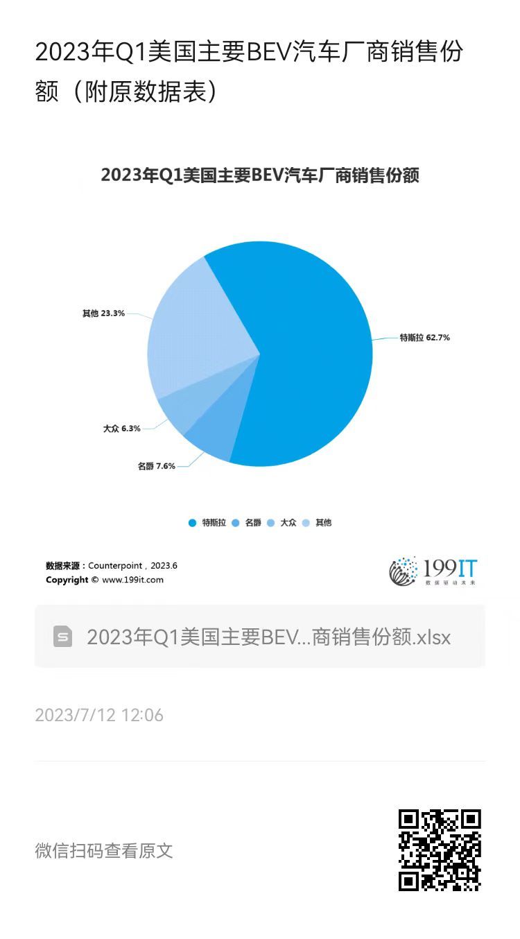 - 2023年Q1欧洲主要BEV汽车厂商销售份额(附原数据表)