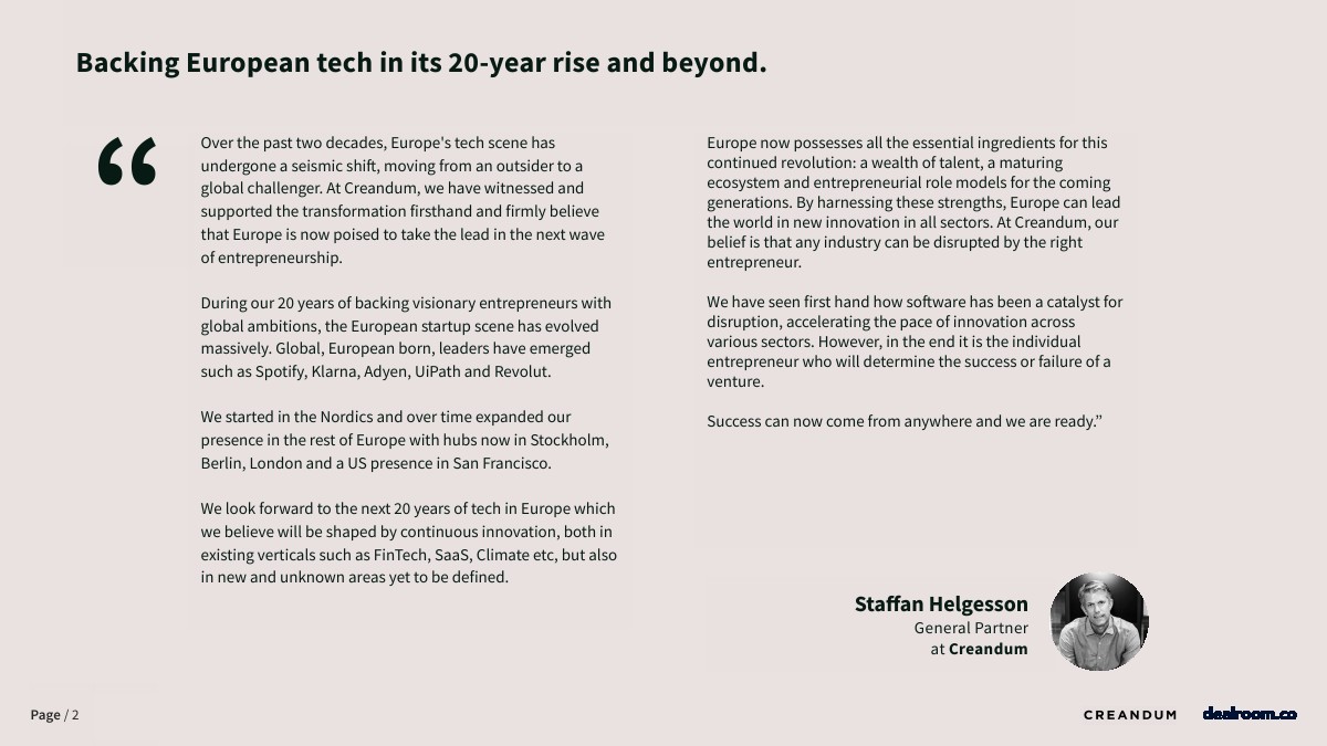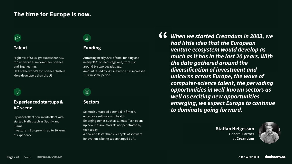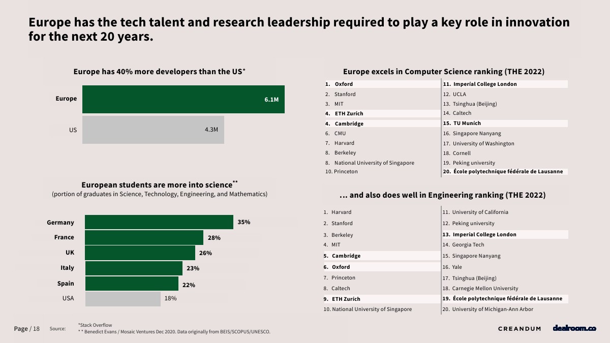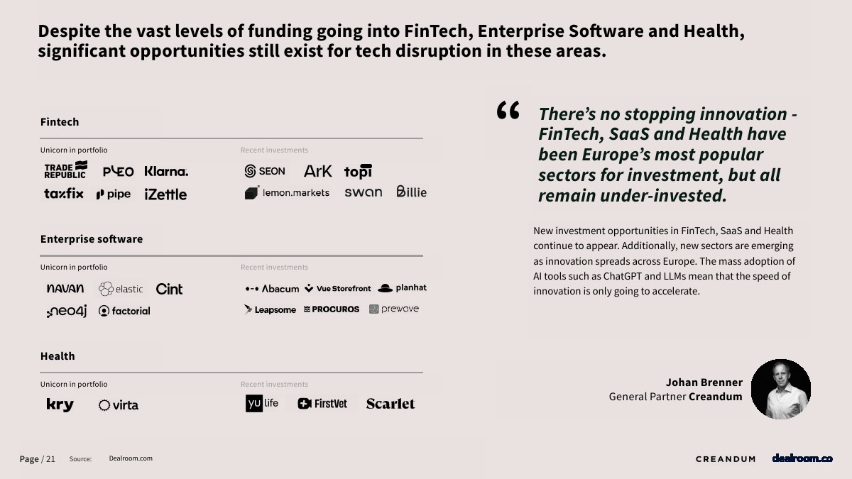 欧洲在金融科技、软件即服务(SaaS)和医疗领域的专业知识和实力现实颠覆的时机已经成熟。