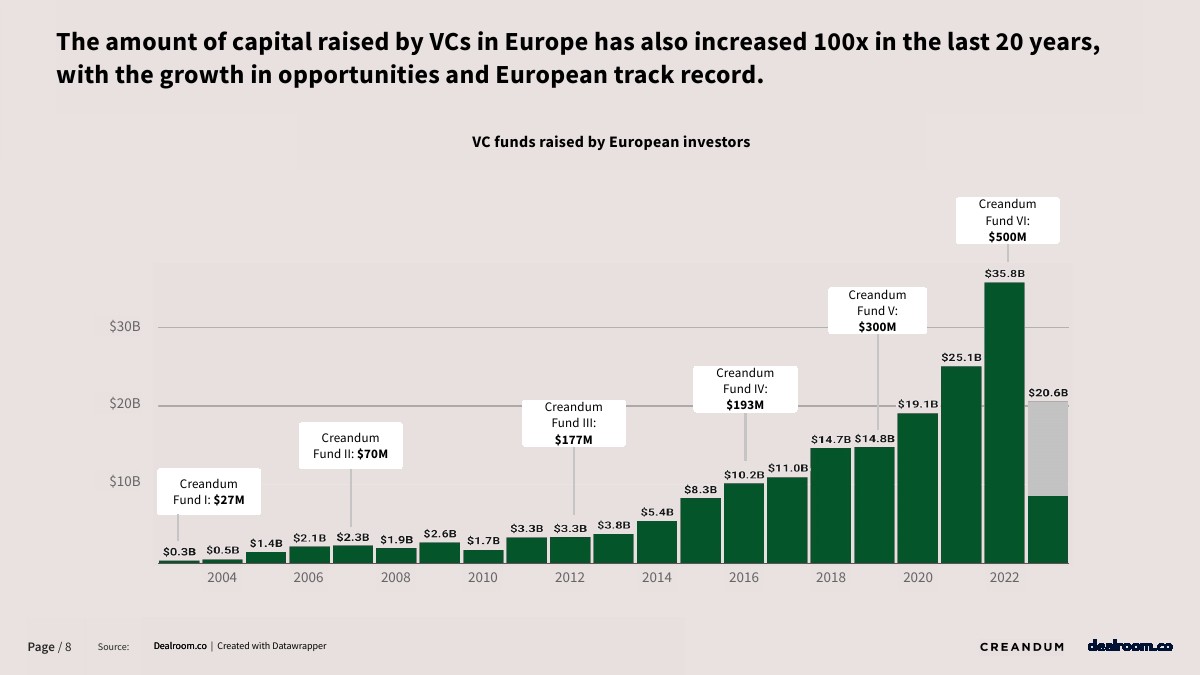 在过去的20年里,欧洲风投筹集的资金数量也增长了100倍。
