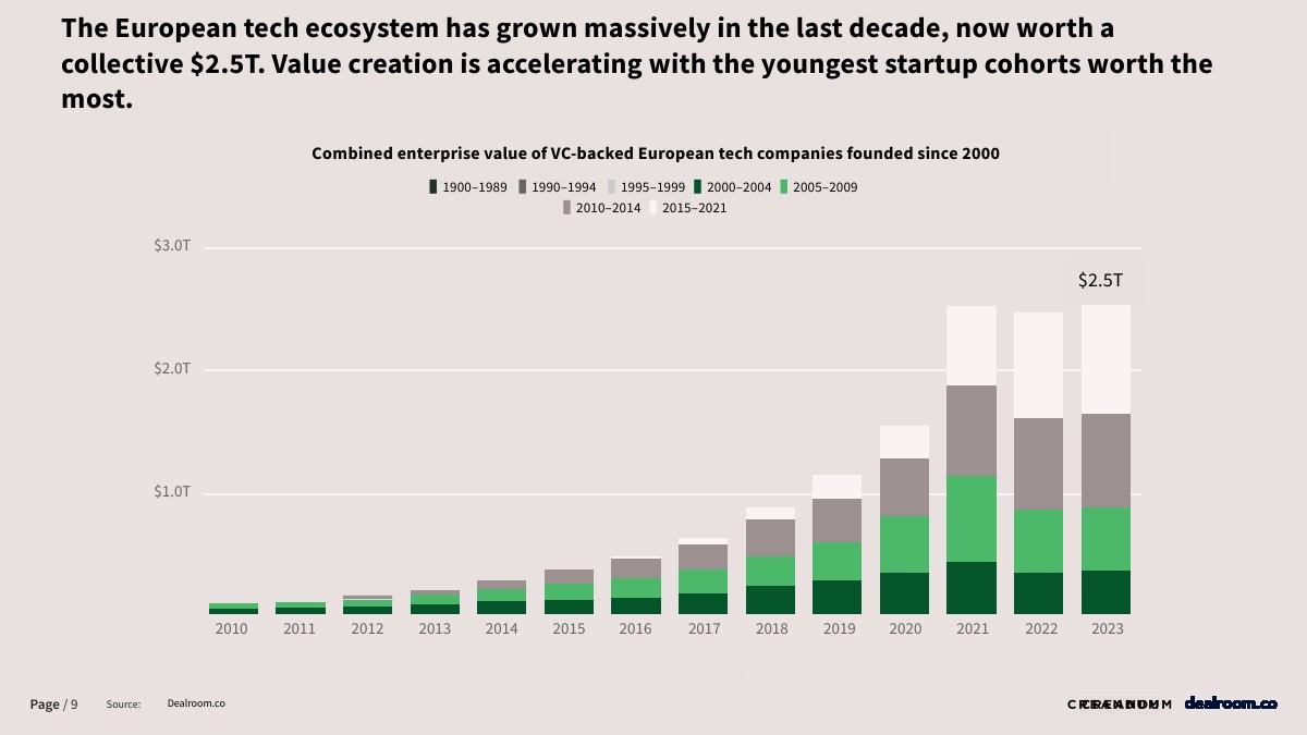 欧洲科技生态系统在过去十年大幅增长,目前价值总计2.5万亿美元。