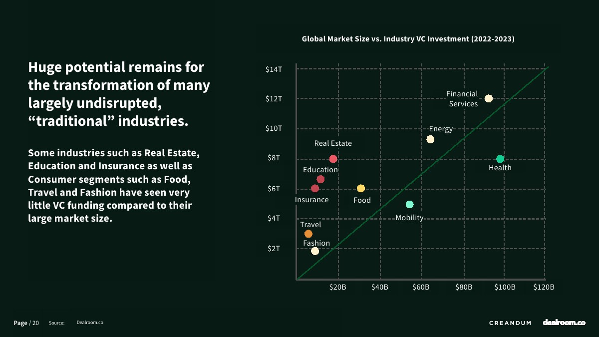 尽管大量资金进入了金融科技、企业软件和医疗领域,但这些领域仍然存在重大的技术颠覆机会。