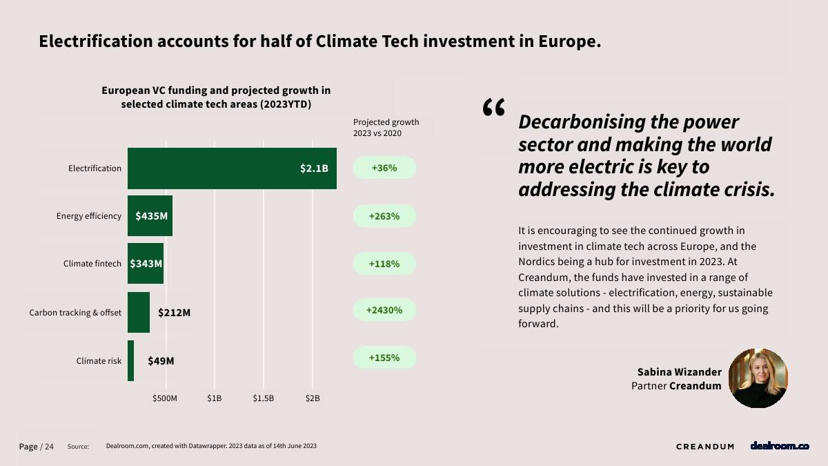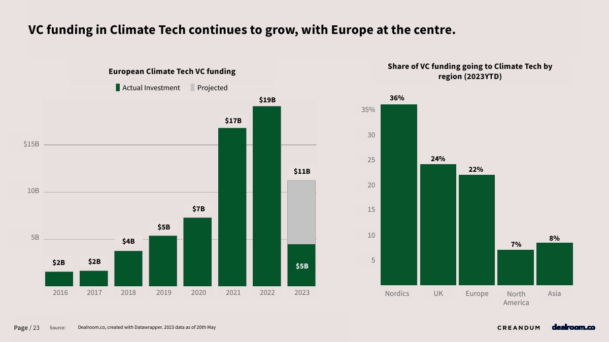 以欧洲为中心,气候科技领域的风险投资持续增长。