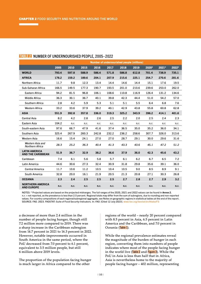 2021 至 2022 年间,亚洲和拉丁美 洲在减少饥饿方面取得进展,但西亚、 加勒比和非洲各次区域饥饿水平仍在 攀升。