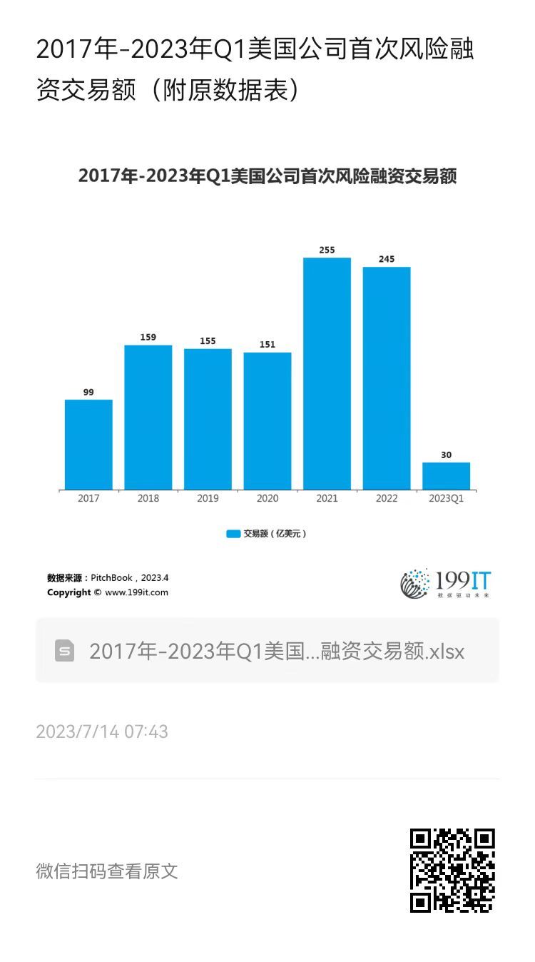 - 2018年-2024年Q1美国公司首次风险融资交易额(附原数据表)