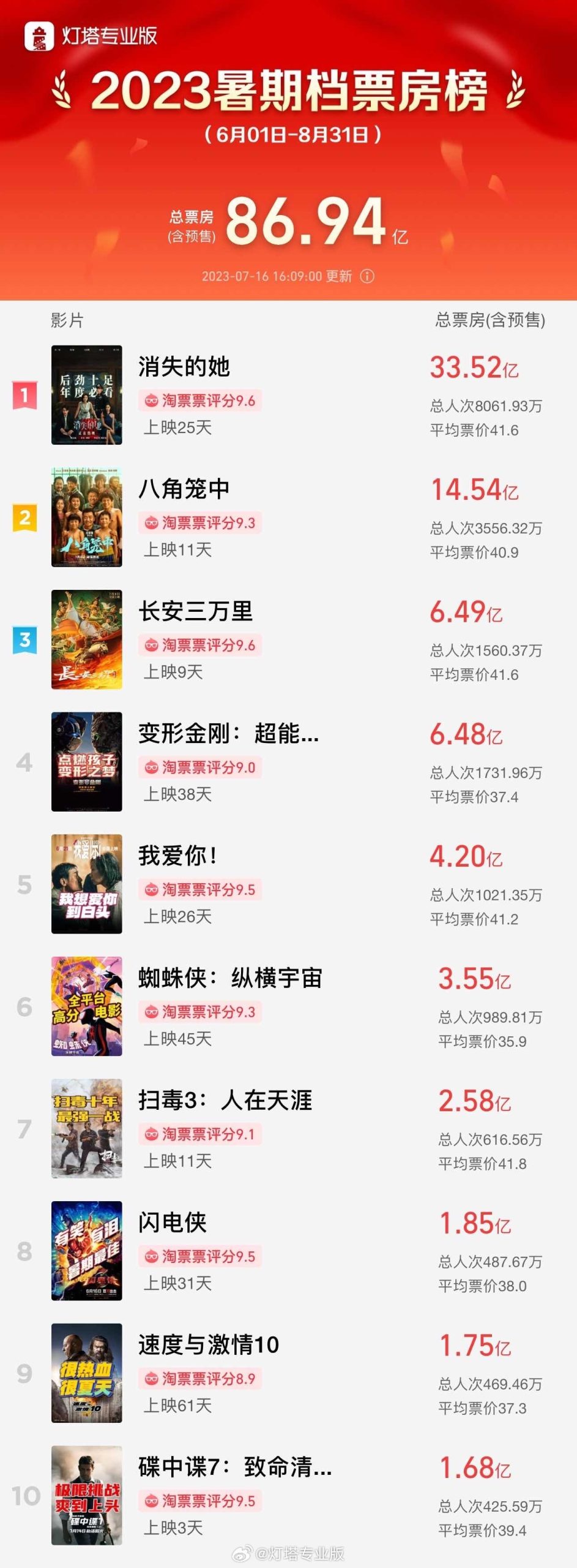 电影《长安三万里》票房已经突破7亿,位列2023年暑期档票房第三名。这部动画电影上映后就备受关注,其豆瓣评分也从上映之初开分8.0升至8.2,淘票票评分是9.6分。在《长安三万里》中,主创们巧妙地将诗词随人物的经历沉浮和心境抒发,配以身临其境的动画,让观者深入理解这些唐诗的背景和情感。