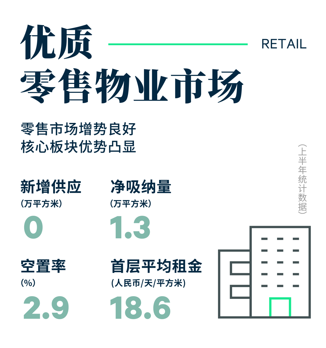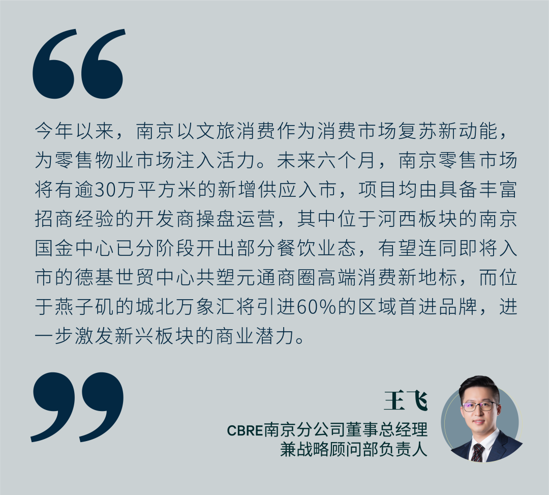 需求方面,首店经济激发餐饮业态蓬勃发展,德基广场录得阿嬷手作与二笼包子首店开业,金鹰亦开出陈麻婆豆腐、啫火啫啫煲、火炉家等地方特色美食首店,与此同时,中式茶饮品牌霸王茶姬与马伍旺饮料厂接连多板块布局。潮流品牌加速集聚宁城,服饰业态稳居次席。德基广场迎来AMIRI与Ganni等海外设计师品牌落位,艾尚天地引入国潮品牌MEDM与来自重庆的街头品牌Whoosis不知其名,国内设计师品牌如Attempt与SMFK则选址夫子庙板块万象天地,此外来自美国洛杉矶的鞋履品牌OETZI于新街口、河西与江宁等多板块录得新店开业。美妆个护品牌能级不断提升,Lancaster全球首家新概念精品店与Carolina Herrera亚洲首家旗舰店相继于南京德基广场盛大开幕,本土品牌扩张脚步依旧,毛戈平美妆积极布点河西商圈,薇诺娜与养生堂在中央商场开出南京首店。凭借强劲的租赁需求叠加愈发有限的可租空间,核心板块租金水平于上半年率先企稳,带动全市购物中心首层平均租金环比上涨0.4%至每天每平方米18.6元,较去年年底累计上涨0.5%。