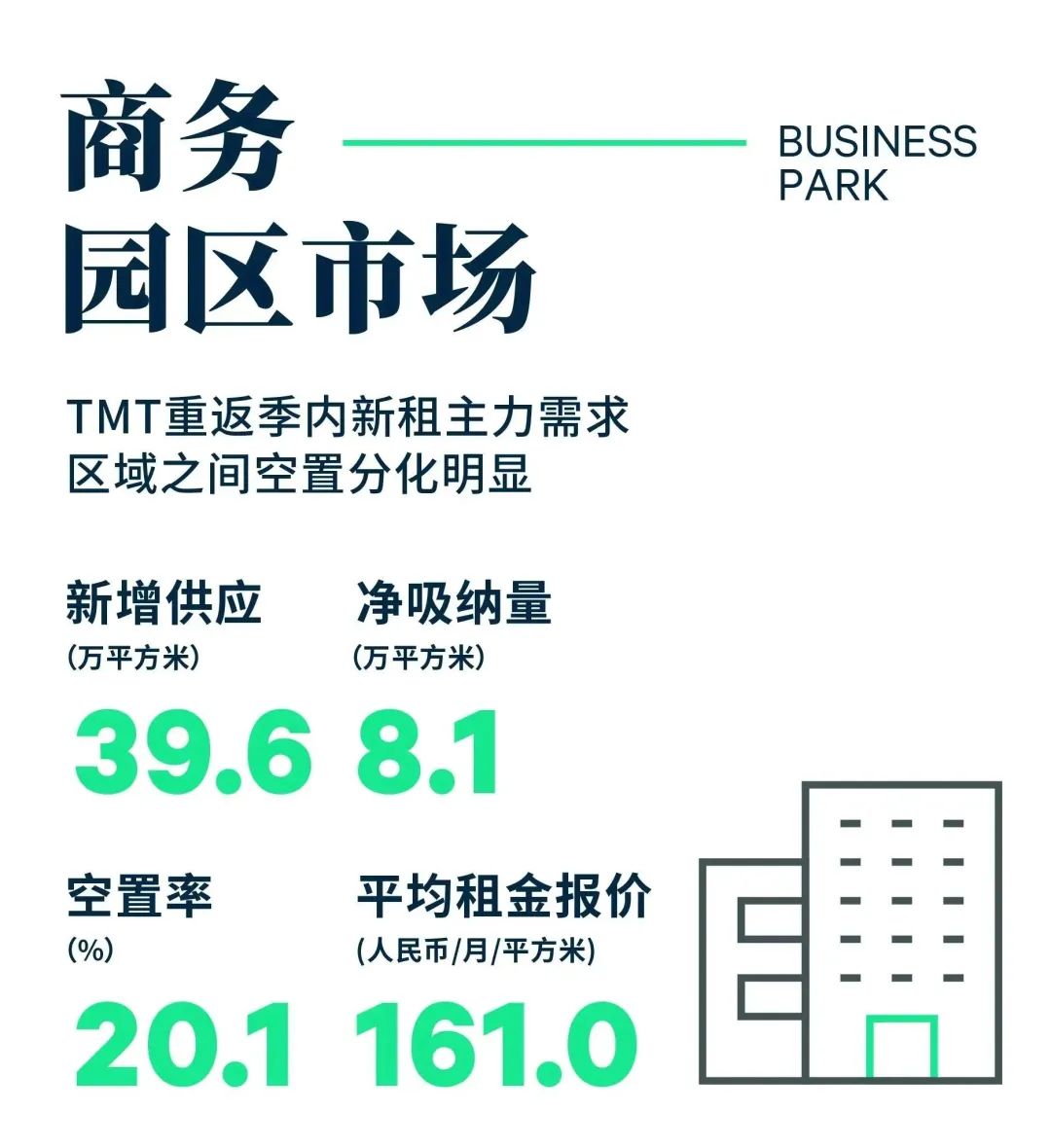 全市商务园区租金报价同样本比环比下降1.1%至每月每平方米161.0元。尤其泛中关村集群业主加大租金降幅,同样本比环比下降1.5%以刺激市场新租需求。