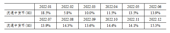注4:自2022年12月起,“流通中货币(M0)”含流通中数字人民币。12月末流通中数字人民币余额为136.1亿元。修订后,2022年各月末M1、M2增速无明显变化。修订后M0增速如下: