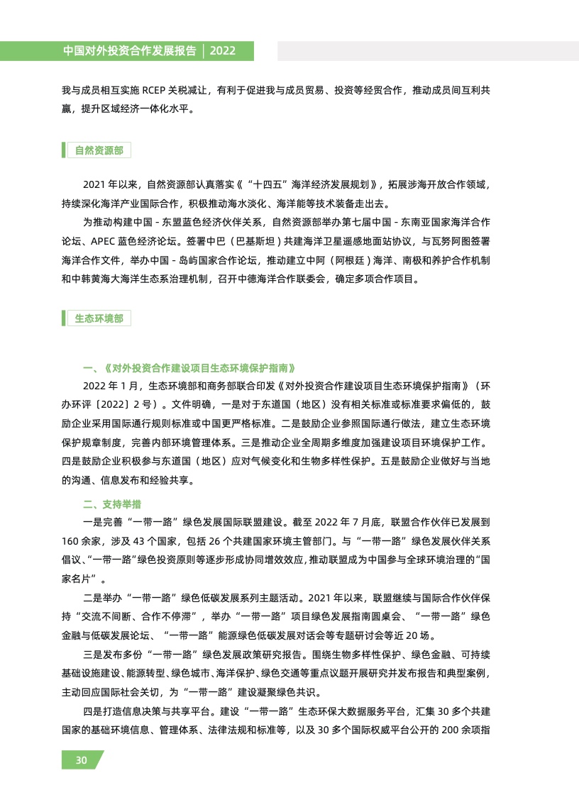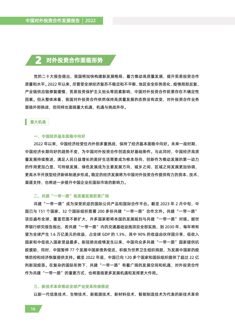 我国顺应国际大势和发展潮流,坚持以我为主和主动引领,切实用好两个市场两种资源,推动 对外投资合作高质量发展。