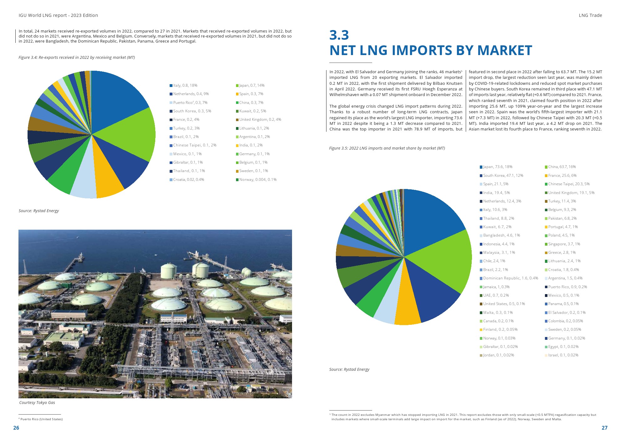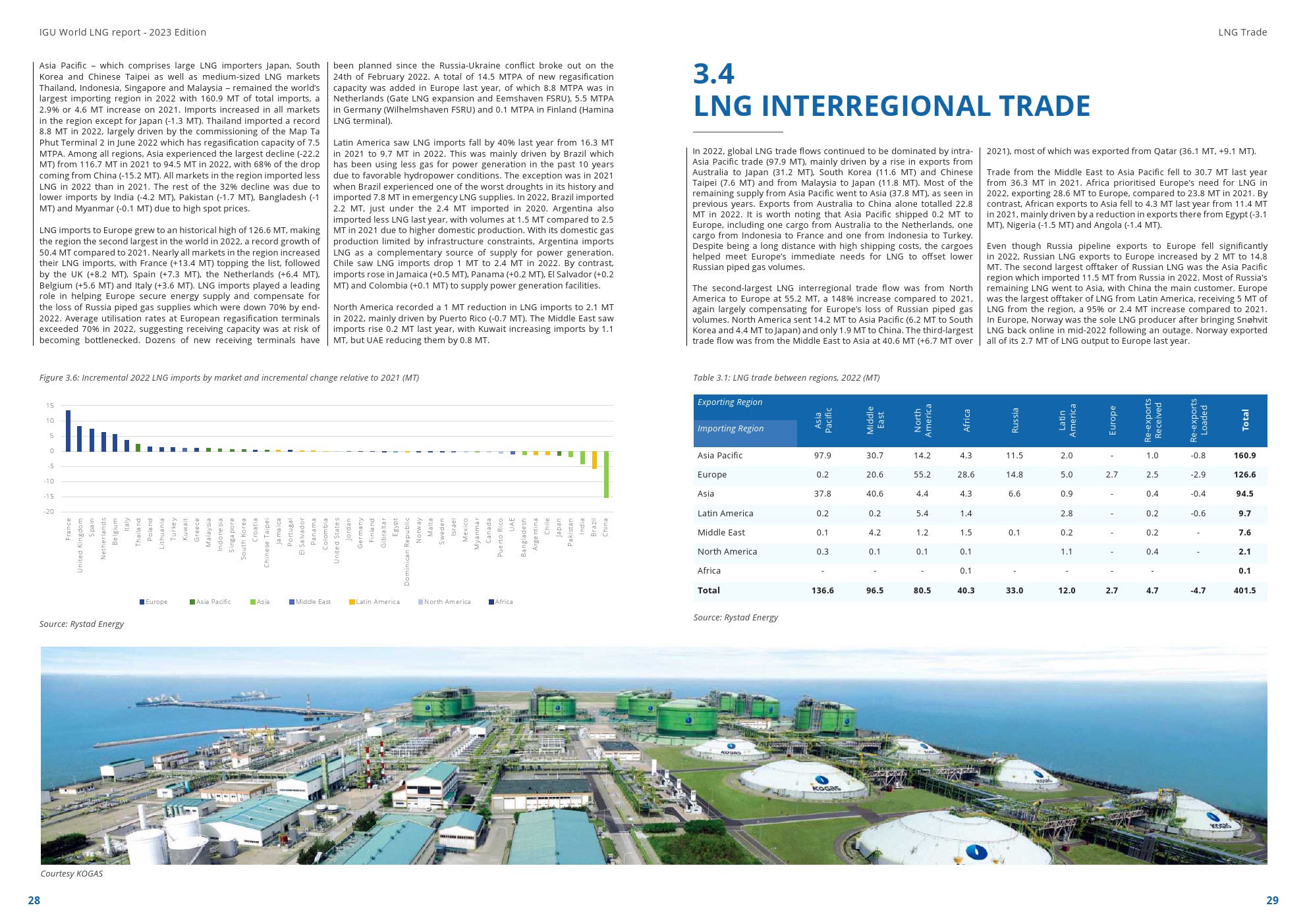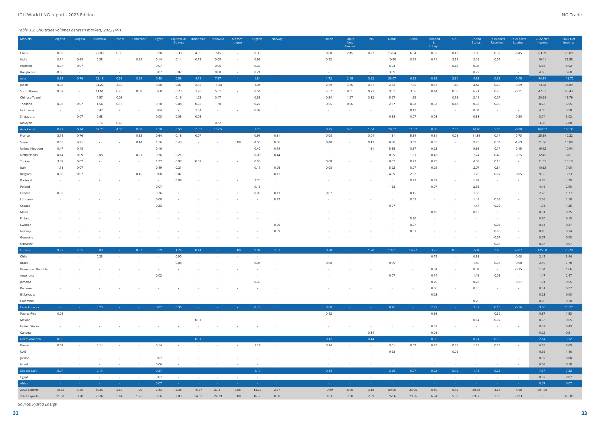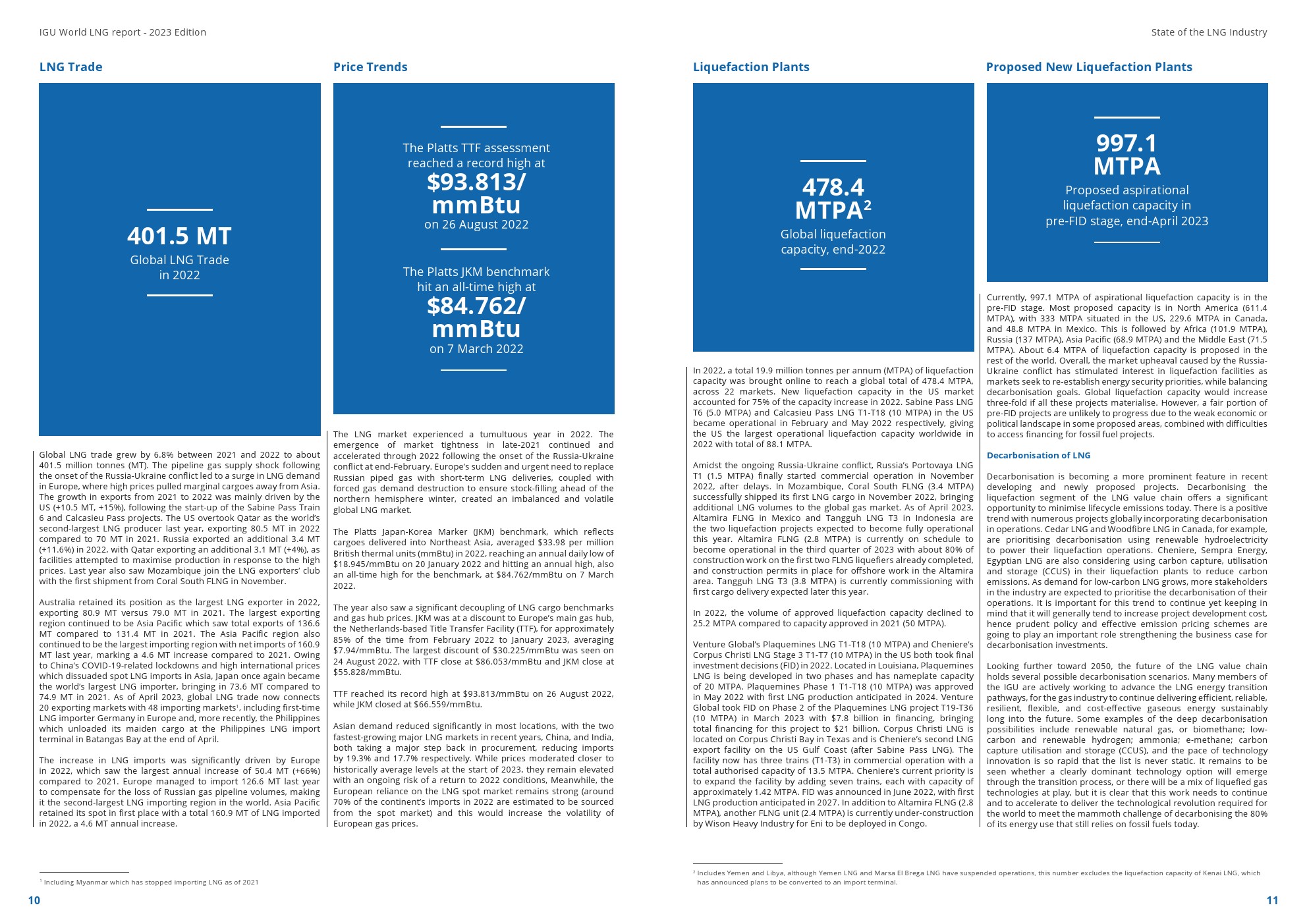 2022年,全球液化天然气贸易量达到401.5吨的新纪录,将20个出口市场与462个进口市场连接起来。2540万吨的增长是由欧洲液化天然气需求激增推动的,以抵消俄罗斯管道流量的下降。尽管液化天然气供应出现了几次意外中断,但液化天然气贸易的年增长率为6.8%,高于2021年的4.5%。