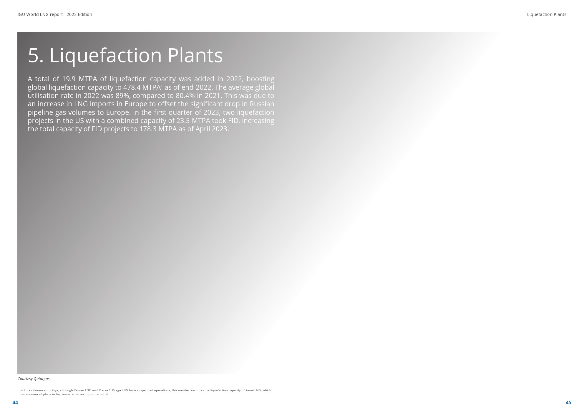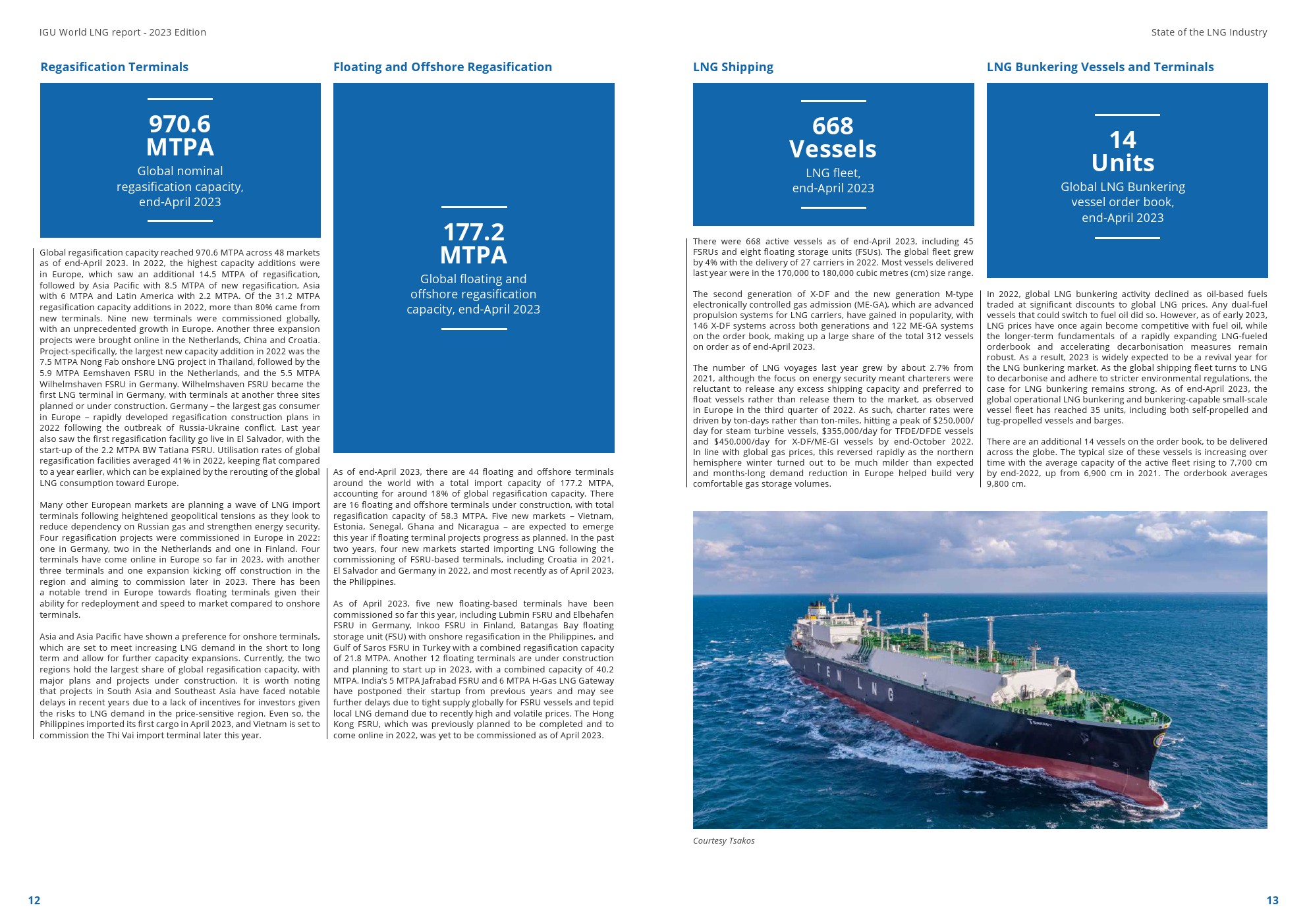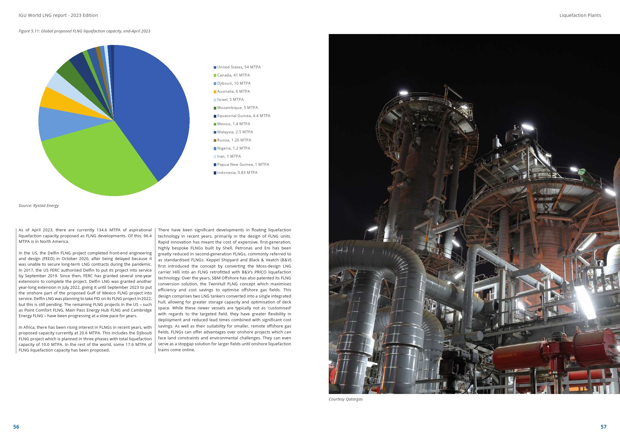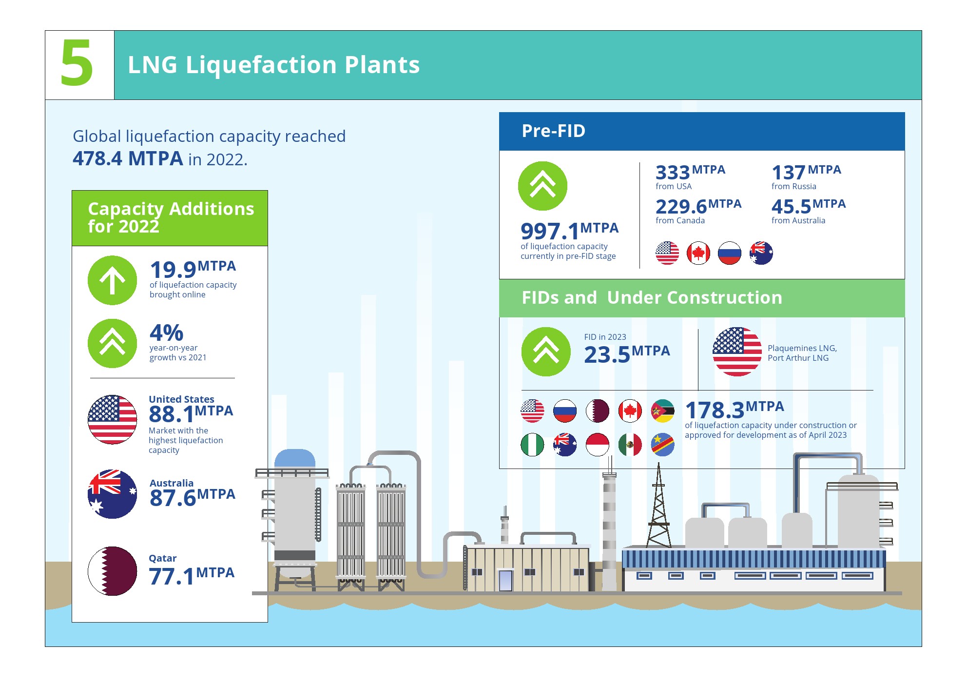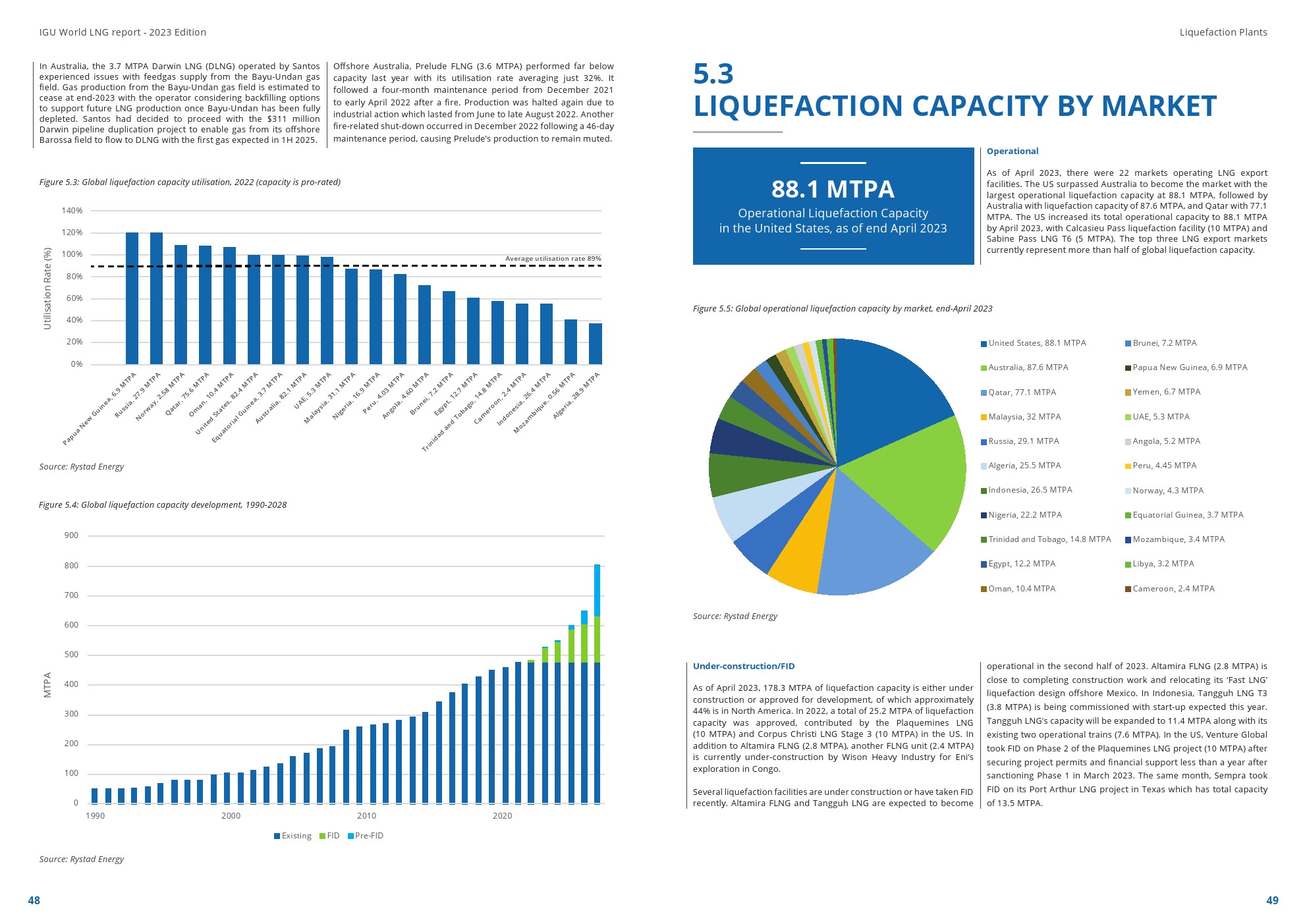截至2023年4月,全球48个市场的再气化能力达到970.6 MTPA。今年最大的产能增加来自泰国的Nong Fab LNG,年产能为750万吨。