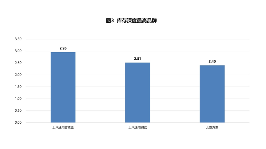 6月份库存深度超过2个月的品牌有4个,其中库存深度最高的品牌为上汽通用雪佛兰、上汽通用别克、北京汽车。