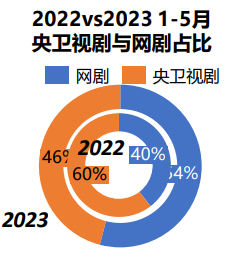 从剧目类型看,相比去年同期,2023年上半年的网剧与央卫视剧的分布有所变化,网剧由于制作成本相对较低,以及目前各大长视频平台工作室模式和外部合作下的自制剧更多深入垂类内容赛道,从而更容易从小颗粒度切割细分人群,因此数量占比有所上升。
