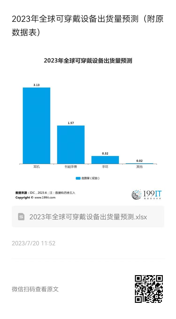 - 2023年全球可穿戴设备出货量预测(附原数据表)