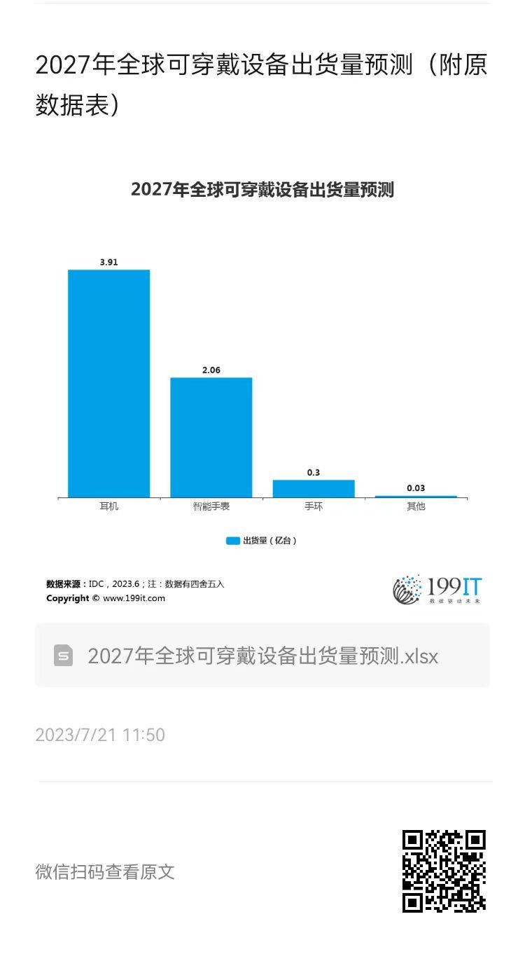 - 2023年全球可穿戴设备出货量预测(附原数据表)