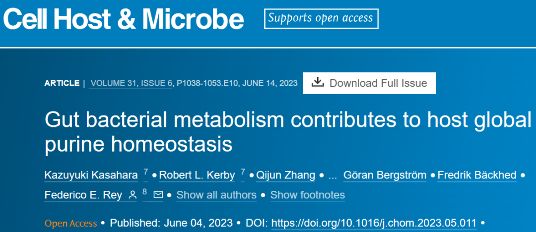 [4] Kasahara K, Kerby R L, Zhang Q, et al. Gut bacterial metabolism contributes to host global purine homeostasis[J]. Cell Host & Microbe, 2023.
