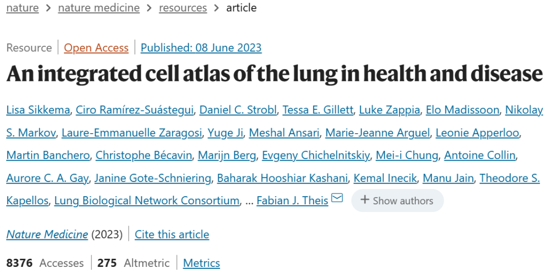 [1] Sikkema L, Ramírez-Suástegui C, Strobl D C, et al. An integrated cell atlas of the lung in health and disease[J]. Nature Medicine, 2023: 1-15.
