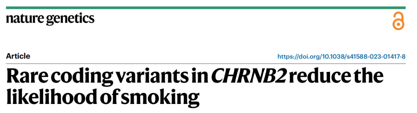 [1]Rajagopal V M, Watanabe K, Mbatchou J, et al. Rare coding variants in CHRNB2 reduce the likelihood of smoking[J]. Nature Genetics, 2023: 1-11.