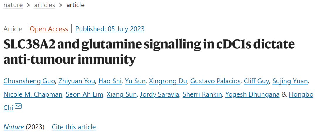 美国圣裘德儿童研究医院的迟洪波团队发现,肿瘤细胞与I型经典树突状细胞(cDC1s)会共同争夺肿瘤微环境中的谷氨酰胺。由于处于失利的一方,cDC1s细胞缺乏谷氨酰胺,这导致其抗原提呈能力减弱,无法有效激活抗肿瘤T细胞。提高肿瘤中谷氨酰胺水平,可以增强由cDC1s细胞介导的抗肿瘤免疫反应,增强免疫治疗疗效[1]。