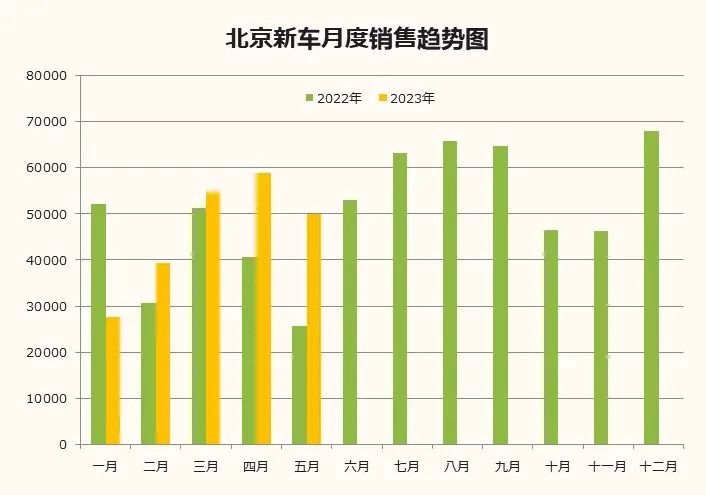 1—5 月北京累计交易新车 23.04 万辆,同比去年 20.02 万辆累计增长 15.08%,增幅高于全国 3.98 百分点。