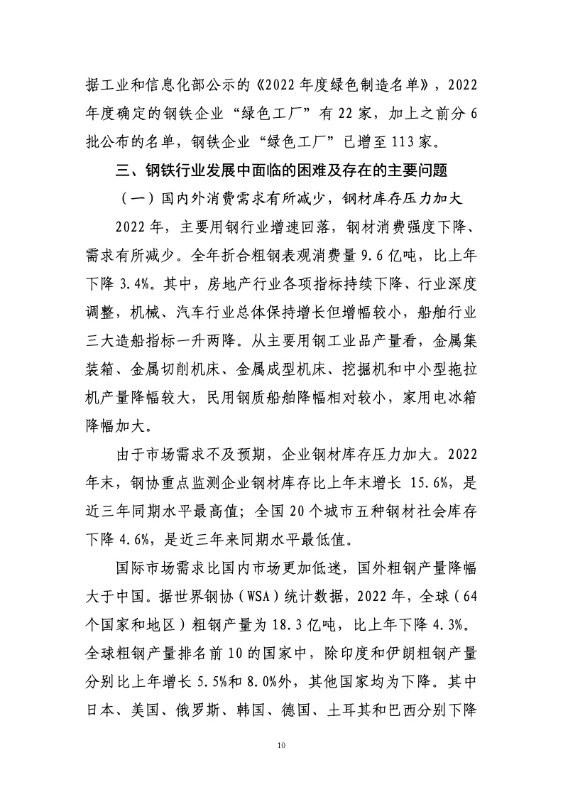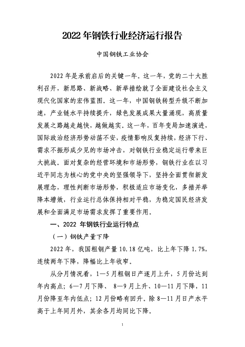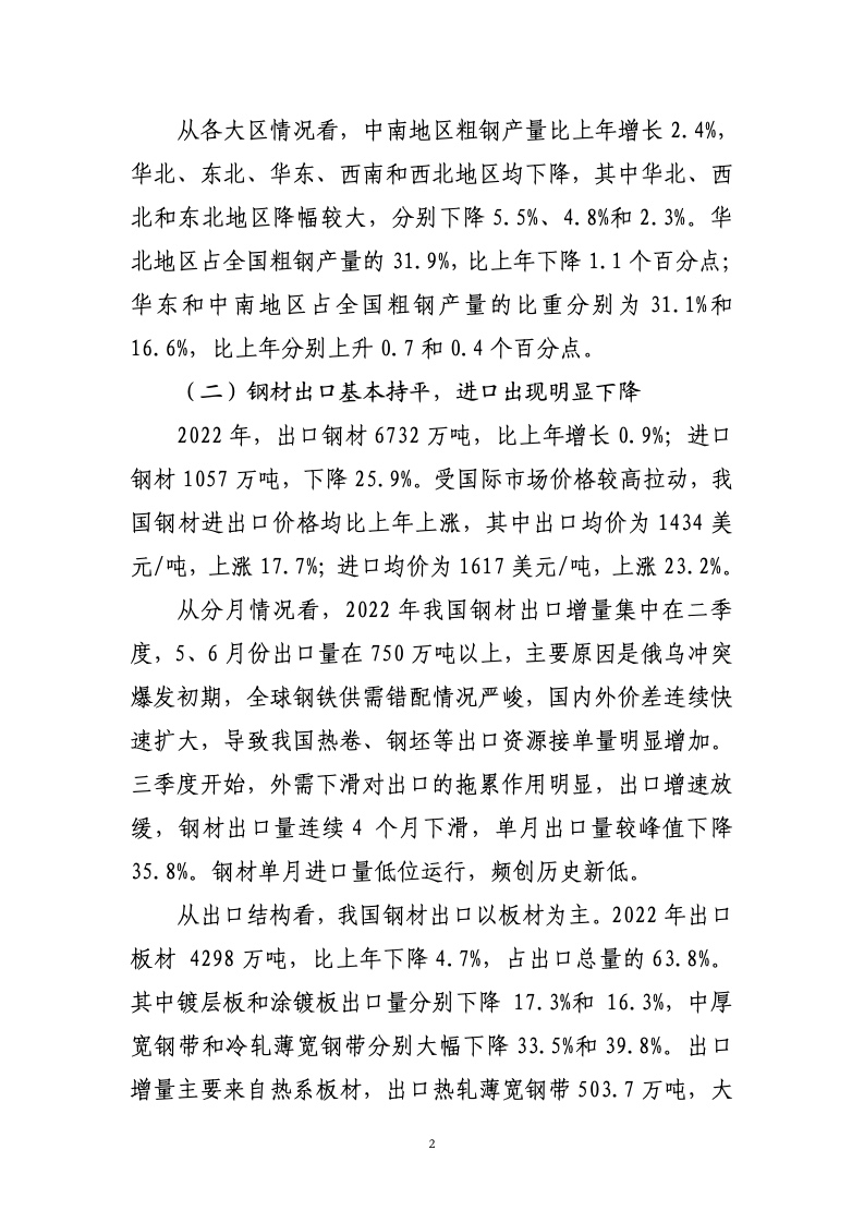 2022 年,我国粗钢产量 10.18 亿吨,比上年下降1.7%,连续两年下降,降幅比上年收窄。从分月情况看,1—5 月粗钢日产逐月上升,5 月份达到年内高点;6—7 月下降、 8—9 月上升、10—11 月下降,11月份降至年内低点;12 月份略有回升。除8—11 月日产水平高于上年同月外,其余各月均同比下降。