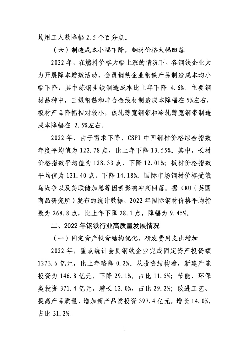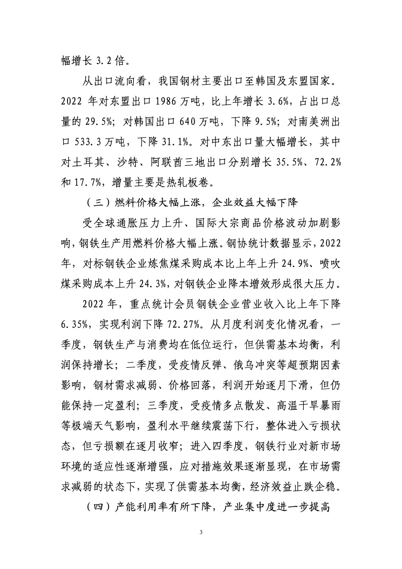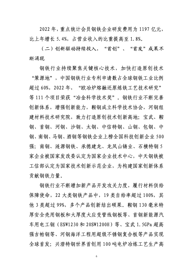 2022 年,出口钢材 6732 万吨,比上年增长0.9%;进口钢材 1057 万吨,下降 25.9%。受国际市场价格较高拉动,我国钢材进出口价格均比上年上涨,其中出口均价为1434美元/吨,上涨 17.7%;进口均价为1617 美元/吨,上涨23.2%。