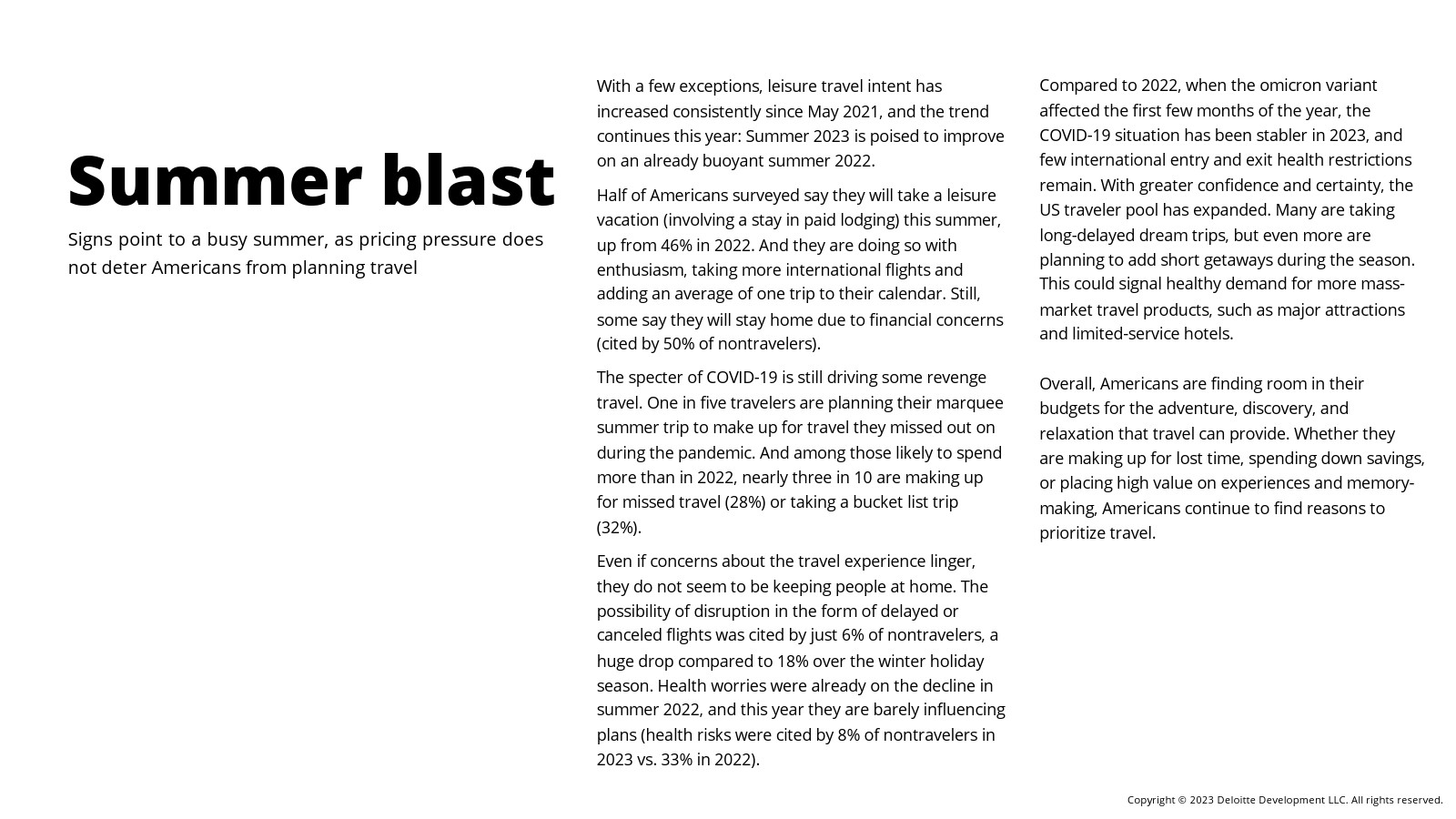 德勤发布了“2023年夏季旅游调查”,主要发现包括: